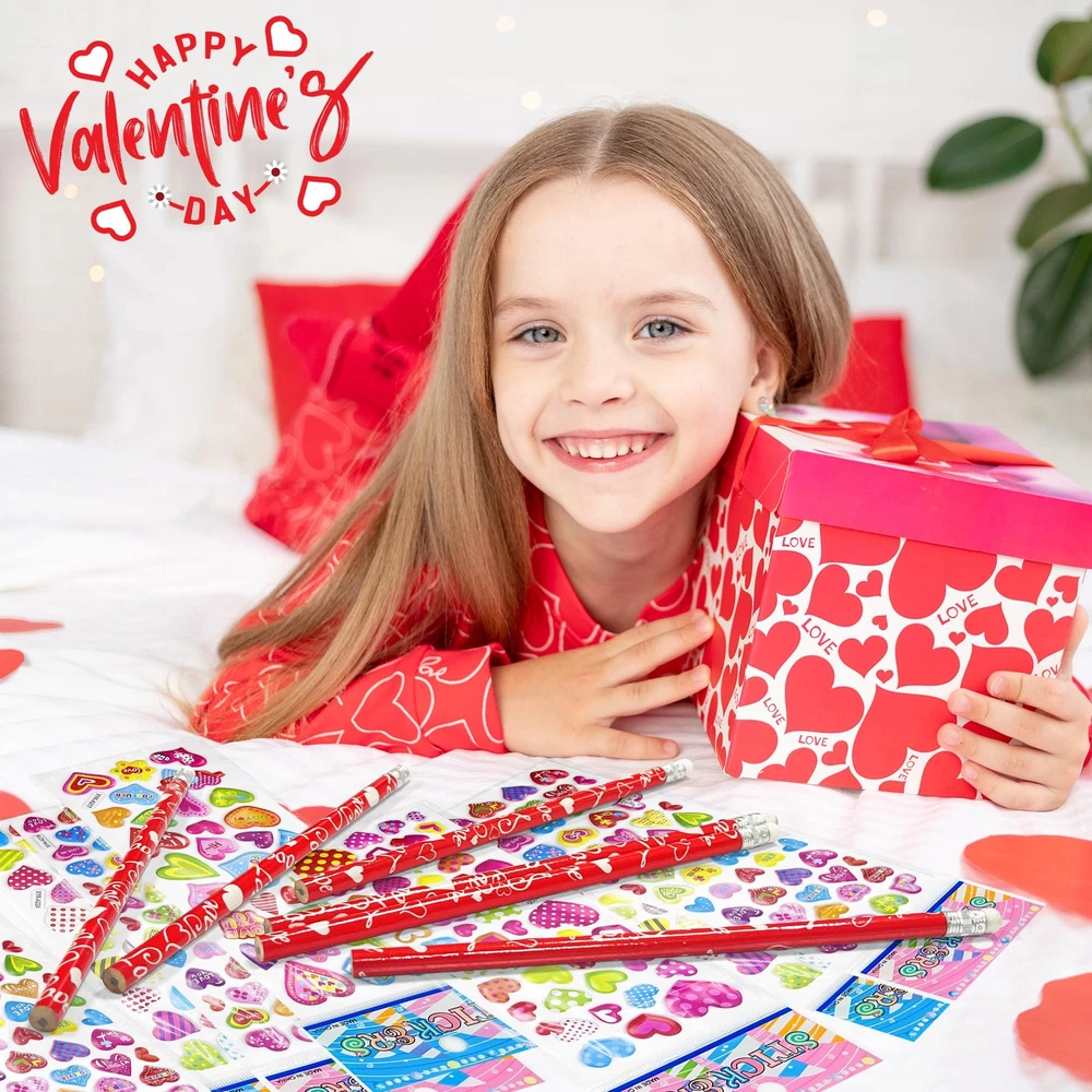Valentines Day Gifts for Kids SUPER VALUE: Delight your kids with a 20-pack Valentine’s Stationary Gift Set! Each set includes a pencil and a sheet of fun valentines stickers. Plus, enjoy 4 extra pencils, making it perfect for class valentines day gifts for kids. PREMIUM QUALITY & SAFETY: Our stationary sets are crafted from high-quality, non-toxic, and BPA-free materials, ensuring they are safe for children. All items meet US toy safety standards, letting you gift with confidence. IDEAL FOR CLASSROOMS: These gift sets are perfect for kids valentines day gifts for school and classroom exchanges. Teachers can use them as classroom prizes or party favors, making them versatile for various events. PERFECT FOR TODDLERS: Designed with toddlers in mind, these sets are great toddler valentines day gifts. The vibrant stickers and pencils encourage creativity and fun, making them a hit among younger children. ENDLESS OCCASIONS: Whether it's for Valentine’s Day, a birthday party, or a home school reward, these valentines gifts for kids are suitable for numerous occasions. They are a thoughtful and practical addition to any celebration.
