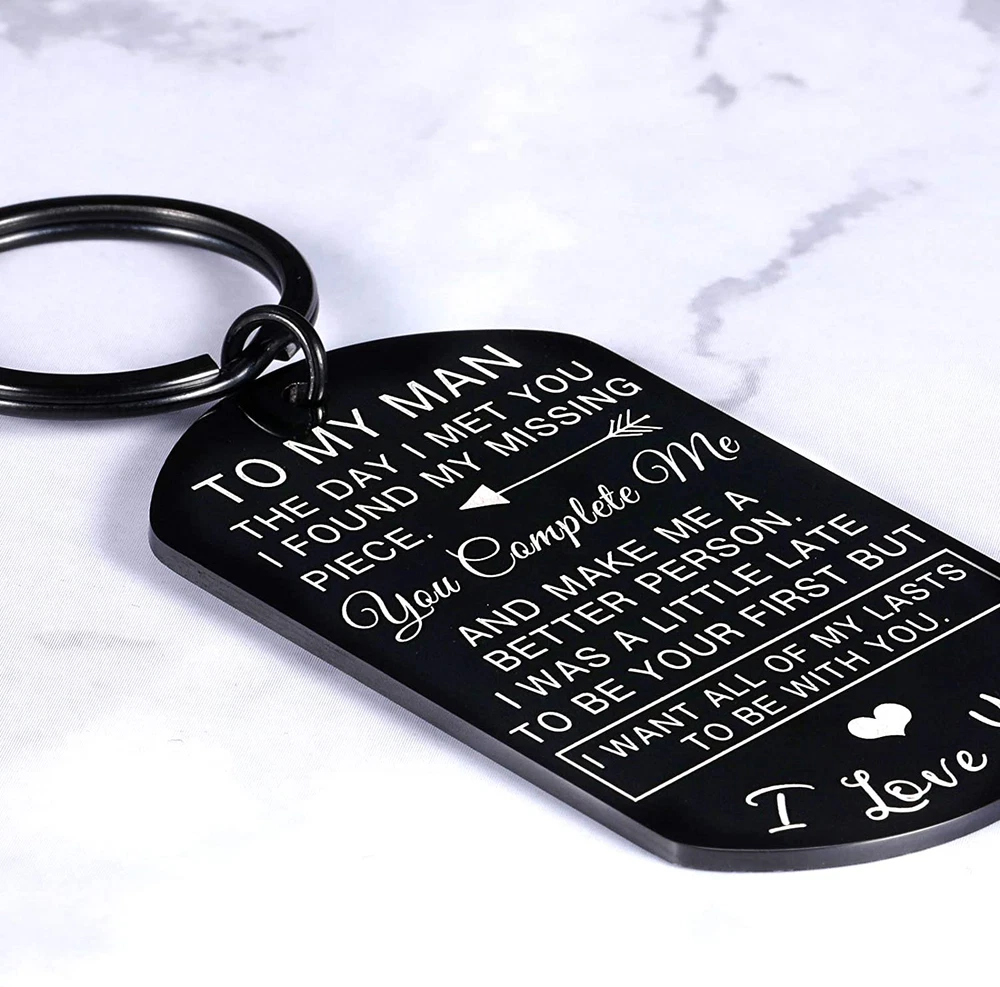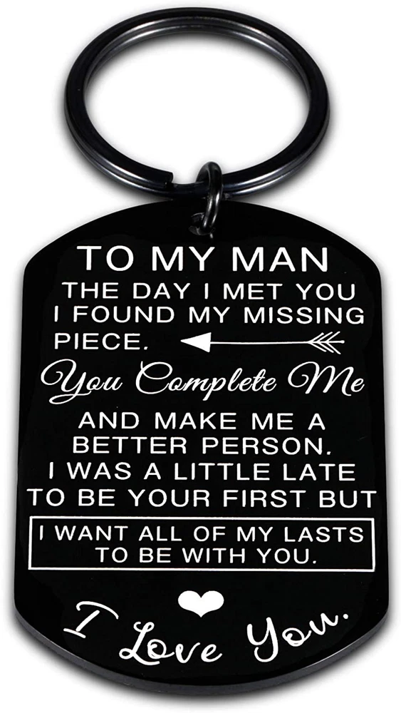 ❥Gifts for husband from wife:❥To my man the day I meet you I found my missing piece. You complete me and make me a better person. I was a little late to be your first but I want all of my lasts to be with you. I Love You. ❥I love you gifts for him:❥Husband gifts from wife, boyfriend valentines day gifts, gifts for fiance men. Anniversary gifts for him, birthday gifts for men, special gifts for him, wedding anniversary gifts for your man. ❥Couple gifts for boyfriend:❥Perfect for deployment, military, bday, engagement, wedding, graduation, Easter, Thanksgiving, Christmas, religious events, National Boyfriend's Day, Spouse's Day. Or just because, a little keepsake. ❥Romantic gifts for him:❥This emotional love quote is very much easy way to express your feelings to your boyfriend. It is most probably the best way to tell your boyfriend that how much you love him. Let him know that how much you love him. ❥Top fineness of the stainless steel❥: hypo-allergenic, resistant to atmospheric, steam and water corrosion, no stain, no rust. Made by premium process, no distortion, no deformation.