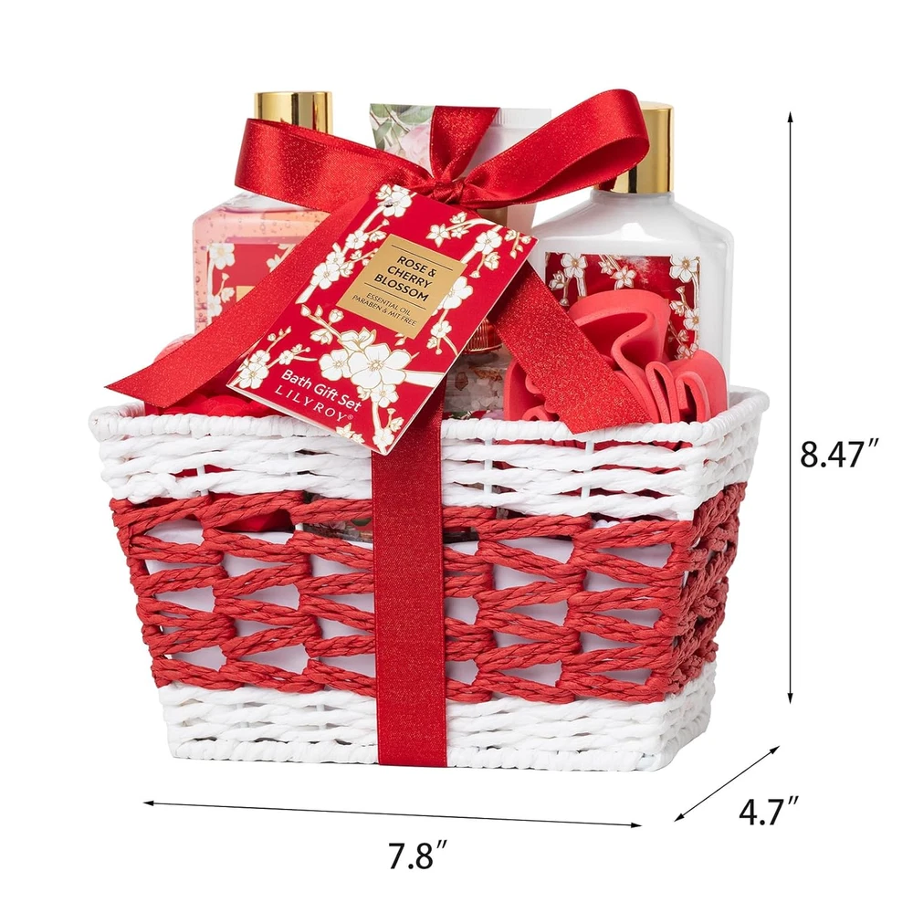 Menu Other Items Feedbacks About Us Contact Us Add To Favorites Valentines Day Gifts for Women - 9 Pcs Rose Bath and Body Gift Basket Set for Women, Spa Gift Set with Shower Gel | Pampering Gift for Christmas, Birthday, Mothers Day Gifts for Mom, Gift Sets for Her 9 PCS SPA GIFT BASKET: Shower Gel, Body Lotion, Bubble Bath, Bath Bomb, Bath Salt, EVA Sponge, 2 pcs Rose Petal Soap packaged in a nice beautiful basket. The spa gift baskets for women offer the most luxurious and perfect bath experience PERFECT HOLIDAY GIFT SET FOR WOMEN: Leave the ordinary behind when you lavish yourself on the soft, feminine fragrance of fresh ROSE & CHERRY BLOSSOM, and make you feel tropical like a holiday. The scent smells fresh BATH AND BODY GIFT SET: Great gift baskets for men or women on Valentine's Day, Mother's Day, Anniversary, Birthday, Christmas. The recipient will like it NOURISHED INGREDIENTS: Lily Roy's bath gift set for women contains premium quality, Mit Free and Paraben Free, Cruelty-Free Essentials that are rich in Shea Butter and Lavender Essential Oil to help moisturize and soothe the skin COMES WITH A REUSABLE BASKET: Its upscale and beautiful basket makes a multi-purpose storage solution to keep your beauty essentials. It also creates a unique decoration for your bathroom, vanity table, powder area, and more. It also has a gift note card for you to personalize it Product description Welcome to the World of Lily Roy! 9 Pieces Luxury Coconut Vnilla Spa Gift Basket Set for Mothers Day Include 210ml Shower Gel 210ml Body Lotion 100ml Bubble Bath 250g Bath Salt 60g Bath Bomb 2pcs Rose Soap Petal EVA Sponge Handmade Basket LILY ROY Creates a Bathing Journey Bath and Body Gift Set Benefit of Ingredients Good Ingredients Ideal gift sets for women made with Shea Butter, Essential Oil, and Vitamin E. We use only high-quality ingredients making our products effective and good for all skin types from dry to oily to normal skin Spa Gift Basket Set for Women Christmas Gifts Giving Gifts Just to Remind to Love and Be Loved Bath lovers will appreciate this lovely set of spa gifts no matter what the occasion. The fragrances combined with our superior skin-loving formulas make them the most popular and sought-after gift baskets for women. From Valentine's Day, Mother's Day, Christmas Day, Thanksgiving Day, and Anniversary to birthday gifts, she’ll adore the dozens of luxurious baths and the endless bubbles, all thanks to you Item Specification Item Form Lotion, Gel, Bath Bomb, Bar Skin Type All Scent Rose 1 Package Dimensions 8.46 x 8.03 x 5.28 inches; 2.51 Pounds Dimensions Shipping Returns Additional Info Product Dimensions: 8.03 inches x 8.46 inches x 5.28 inches. Weight: 2.51 lb Fast shipping is very important for us. Our standard shipping service is FREE. Your order will be shipped within 1-3 business days upon full payment received. Most items are delivered within 3-5 business days, however, please allow 3-10 business days. We are shipping only to USA. We only ship to the confirmed Paypal address. We reserve the right to cancel any order for any reason at any time. We are not responsible for undeliverable addresses. We offer a 30 day return policy from checkout winning date. Your satisfaction is guaranteed! If for any reason you are unhappy with your item, just return it within 30 days for a full refund, minus shipping cost. Please contact us prior to initiating a return so that we can issue you a refund authorization. Items defective upon receipt must be packaged in their retail packaging as if new and returned with a detailed description of the problem. Return shipping fees are not refundable. We reserve the right to decline any returns if the above guidelines are not followed. All of our items, unless otherwise stated, will only run on 120 volts. Please check to make sure your country complies with these specifications. If you have a problem or question regarding your transaction please contact us before leaving any type of feedback. We will work with you to resolve any problem you may have.