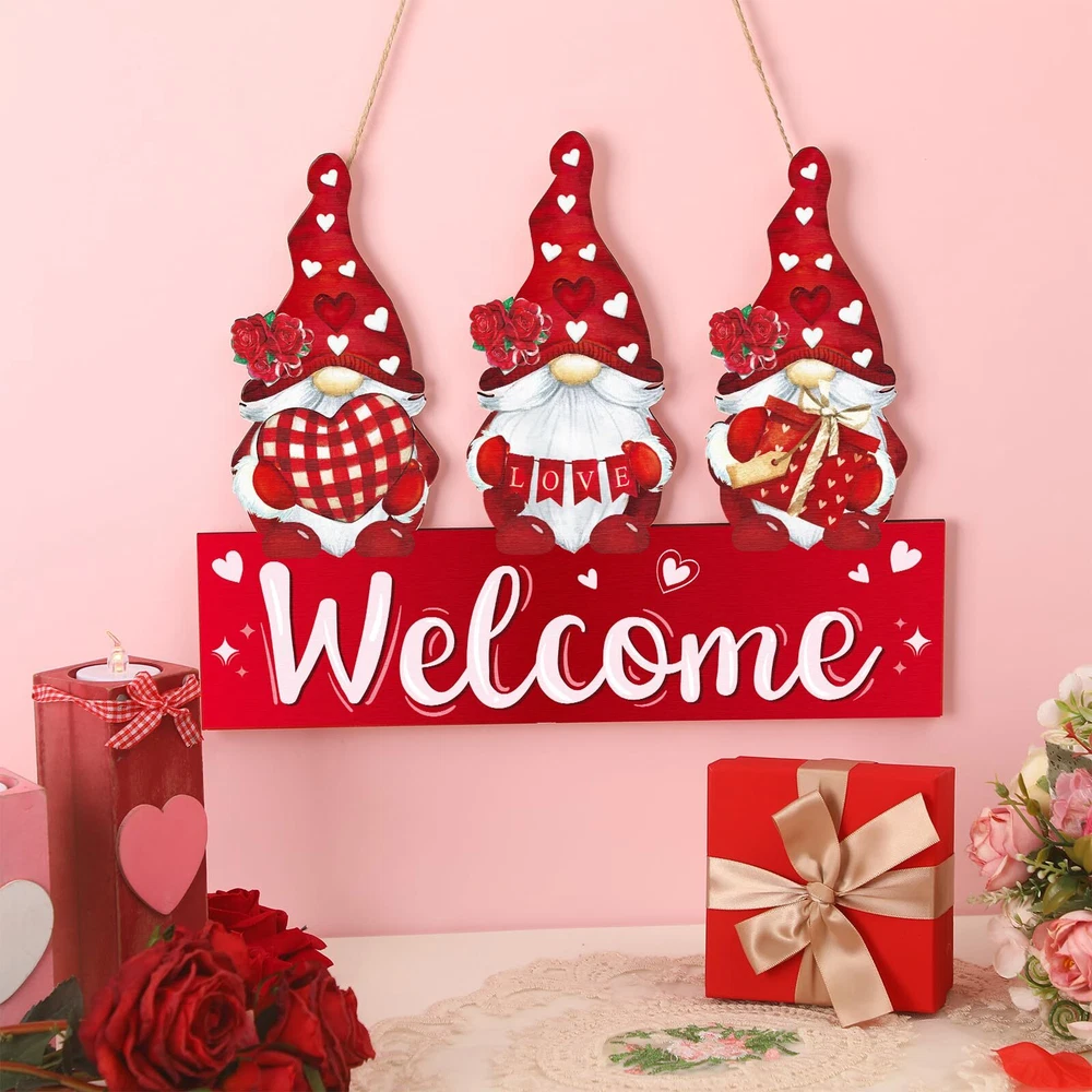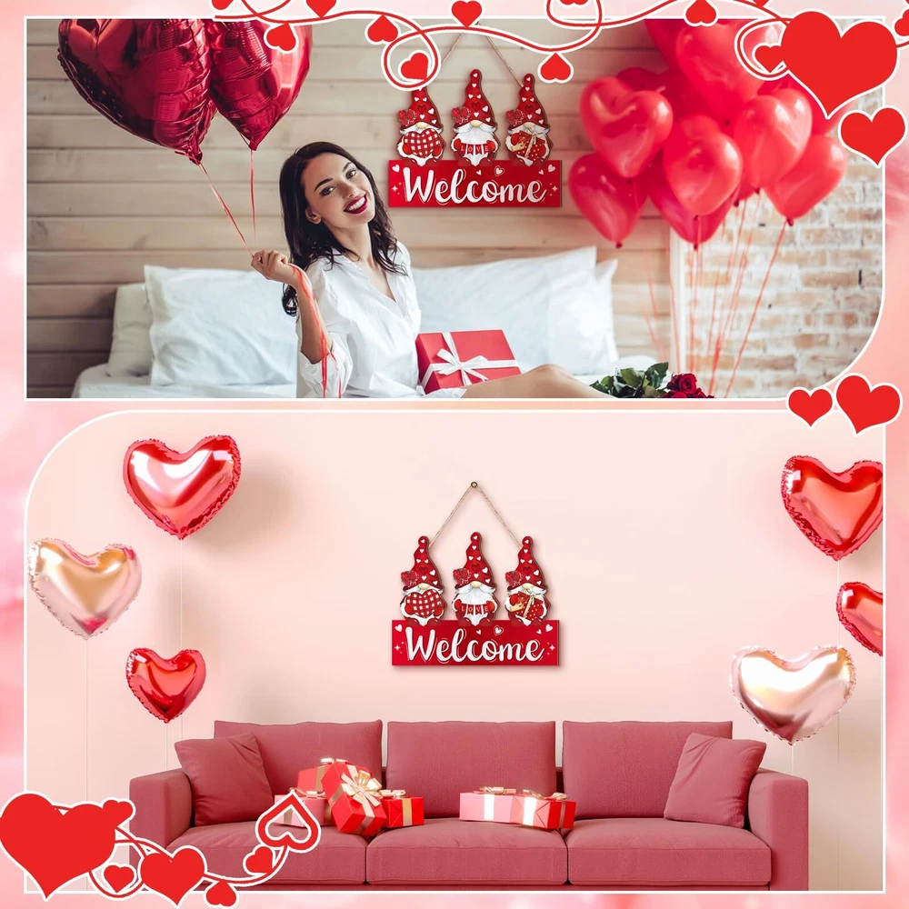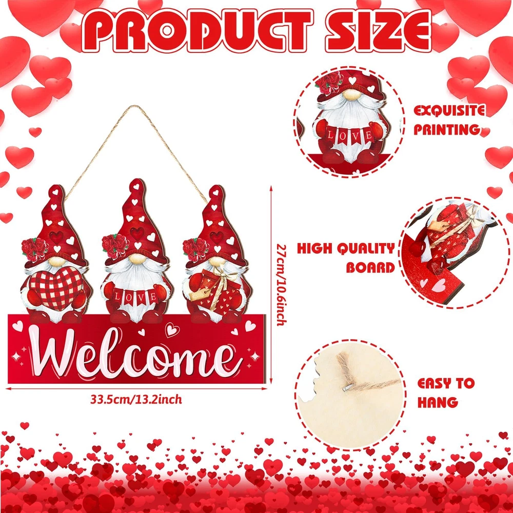 Features: Space saving and practical: Despite its intricate design, the Valentine's Day front door decor is compact. The appropriate size does not consume too much space whether you choose to hang it on your door or window, it optimizes your space efficiently while making a significant impact. Creating a festive atmosphere: This Valentine wall decoration is not just a decorative piece but a nice tool to establish a warm and joyful Valentine's atmosphere. It's the little details that can make your home look nice, and this gnome shaped hanging sign with roses is just the thing to add that touch of love. Specifications: Material: wood Color: as shown in the figure Size: about 13.2 x 10.6 x 0.2 inches/ 33.5 x 27 x 0.5 cm Package includes: 1 x Valentine's Day hanging sign Notes: Manual measurement, please allow slight errors on size. The color may exist a slight difference due to different screen displays. Ideal Size: with an approximate size of 13.2 x 10.6 x 0.2 inches/ 33.5 x 27 x 0.5 cm, Valentine's Day gnome decor offers an ideal footprint that allows effortless decoration without taking much space Stylish and Functional Design: the door hanging sign boasts a sweet gnome design adorned with romantic roses, and the warm welcoming word 'Welcome' printed on it; This exquisite look creates a sweet holiday atmosphere, making your home feel more inviting during Valentine's Day Quality Material: this Valentine's Day gnome door hanger is crafted with quality wood that are not easy to break, deform or fade, smooth surface, reliable and sturdy, ensuring its longevity and sturdiness Convenient Hanging Mechanism: equipped with a string, this adorable Valentines' door sign can be quickly and easily hung on different places, bringing festive cheer; Its design blend seamlessly with most home decoration styles, making it a versatile choice Multipurpose Home Decoration: this Valentines hanging sign goes well beyond decorating your front door; You can also embellish your porch, wall, window, table, fireplace mantel, bedroom, kitchen, living room, farmhouse, bathroom, coffee shop, or even a bakery to spread the Valentine's Day spirit