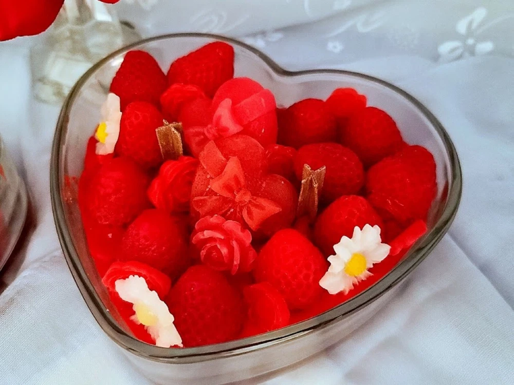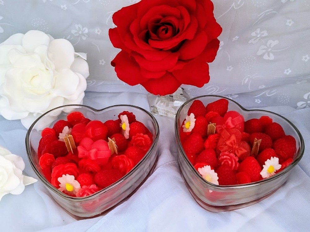 This is a large, heart-shaped jar candle made of soy wax. With a multicolor design, it is 6 inches in diameter and 2 inches in height, weighing 20 oz. Handmade in the United States, this decorative candle features an Art Deco style and a slight scent. Perfect as a Valentine's Day gift, this unique candle adds a special touch to any home decor.