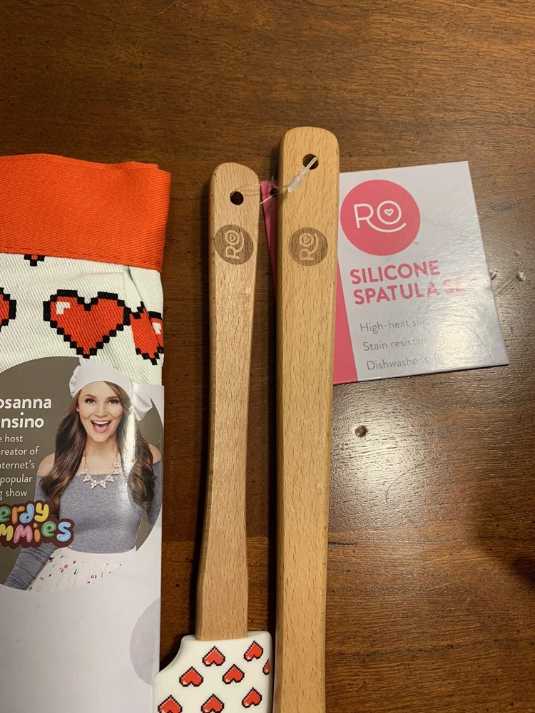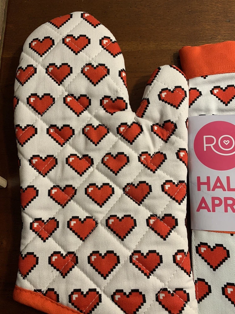 Set includes one oven mitt, one half-apron, and set of two spatulas(one small and one large). I will ship within one business day of payment via USPS.