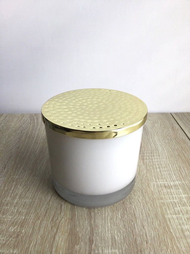 Gorgeous jar candle with a beautiful message. Glass exterior with a punched tin lid. "LOVE" message in front. 26 oz. natural soy blend candle. Storm scent. Approx. 4.75" high and 4.75" in diameter.