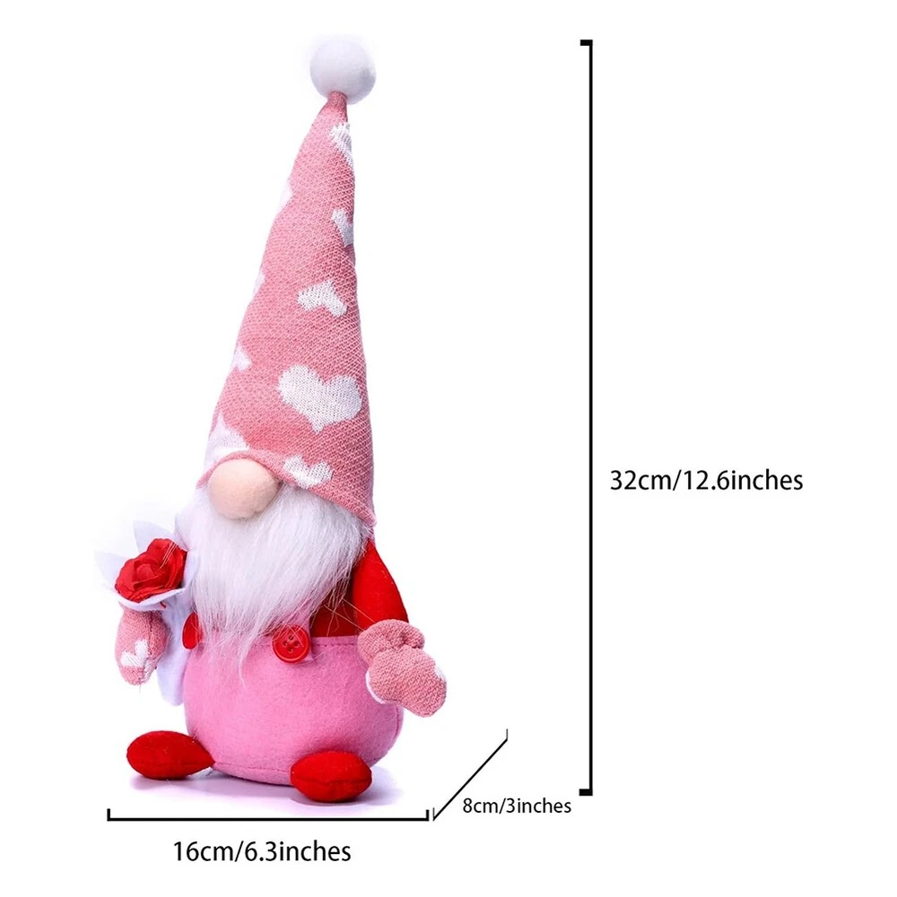 Valentine Day Gnomes Decoration Plush - 2 PCS Mr. and Mrs. Scandinavian3987 Valentines Day Gift: The lovely Mr. Gnome and Mrs. Gnome can add a festive atmosphere to Valentine's Day. This gnome couple is the perfect Valentine's Day gift for your wife, girlfriend, or mother. Premium Material: Our gnomes Valentine Day decorations are made of High-quality materials, comfortable and tear-. There's a bendable wire in the hat, and the heavier bottom allows it to stand firmly. Valentine's Day Decorations: These gnome Valentines are very suitable for decorating rooms, sofas, and candlelight dining tables, adding a romantic and sweet Valentine's Day atmosphere. Unique Design: The gnomes hug heart and the , the faceless design makes its appearance more peaceful and cute. They have bright reds and pinks that look very attractive and vibrant. Handmade Gnome: Since the gnomes are handmade, there be a little difference in size and weight. The package includes 2 Valentine's Day gnomes. Colour:As Shown Material:cloth Size:16x8x32cm Package Contents: 2 * Decorate