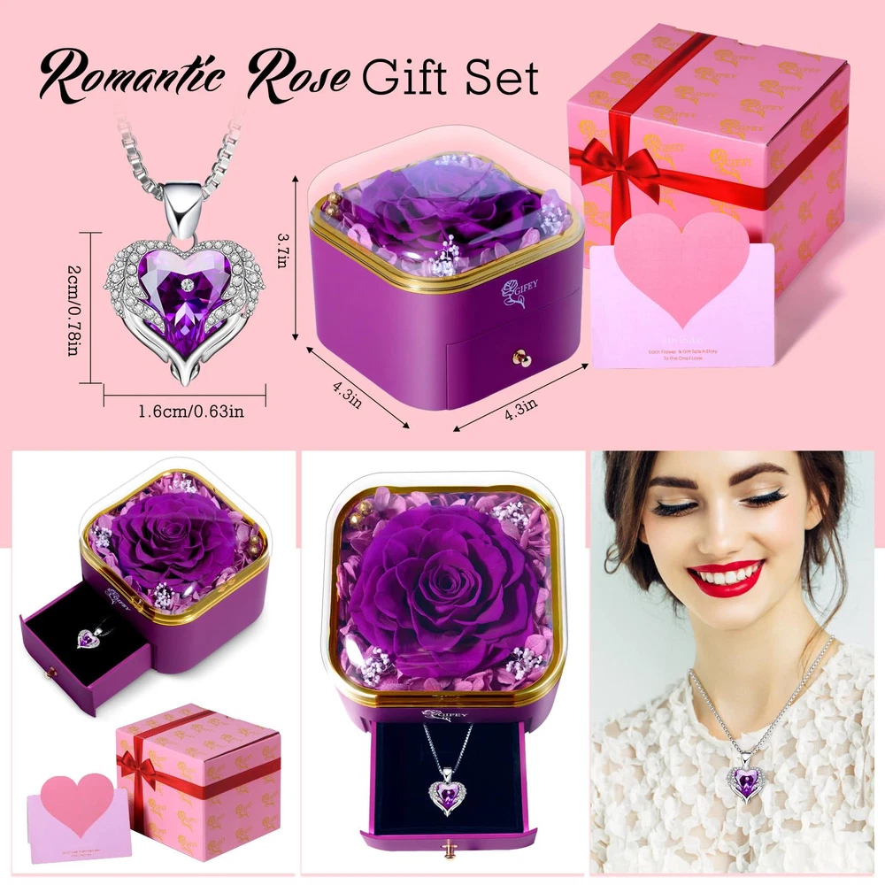 Valentines day gifts,Preserved Real Rose: Preserved real rose are made of 100% real fresh roses. After a unique preservation method, our roses can keep the appearance of flowers for 3-5 years, without watering and management. Preserved real rose with necklace is a creative gift for Valentine’s Day, Anniversary, Mother's day and Birthday. Valentines day gifts for her,Birthday Day Gifts for Women :Preserved Roses are well wrapped in the gift box with a greeting card, so that you could give directly without spend time on package. As an exquisite luxury gift, it can also store other jewelry. The necklace can be worn, and the rose box can be placed indoors as an ornament, Your lover will feel happy every day looking at it. Valentine Day Gifts ,I Love You Gifts for Her, Angel Wings Heart Necklace: classical angel wings-shaped design with shining heart Austrian birthstone crystal. symbolizes eternal love, spirituality and protection.Valentines Day gifts for her, Mom gifts for her birthday, red rose gifts for her, Valentines romantic gifts for her. Valentine Day Gift Ideas,Romantic Gifts for Her :Surprise your loved ones with a stunning forever flower and a shining crystal pendant that will keep the memories alive for years to come. gifts for her, gifts for mom, gifts for girlfriend, girlfriend gifts, cool gifts,gifts for grandma, gifts for wife,gifts for sister and so much more! choose the color they'll love most for their next gift! Great Gift for Women :Eternal rose means eternal love, this product will be the best gift for her. Your anniversary can be romantic and an unforgettable memory.Lovely Gifts for Wife, Mom,Girlfriend, Fiancée, Grandma ,Sister,as Valentine's Day, Mother's Day, Christmas, Thanksgiving, Wedding, Anniversary, Birthday or other Holiday Gifts for Women.