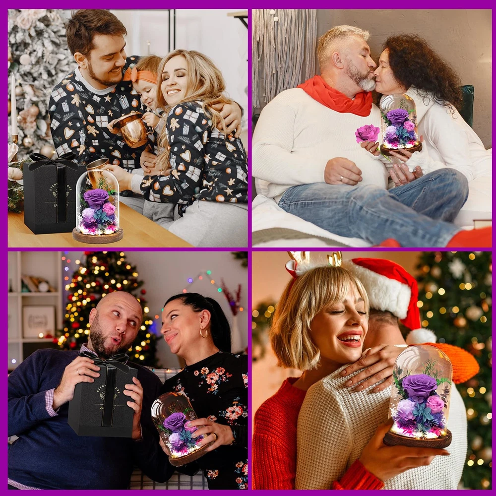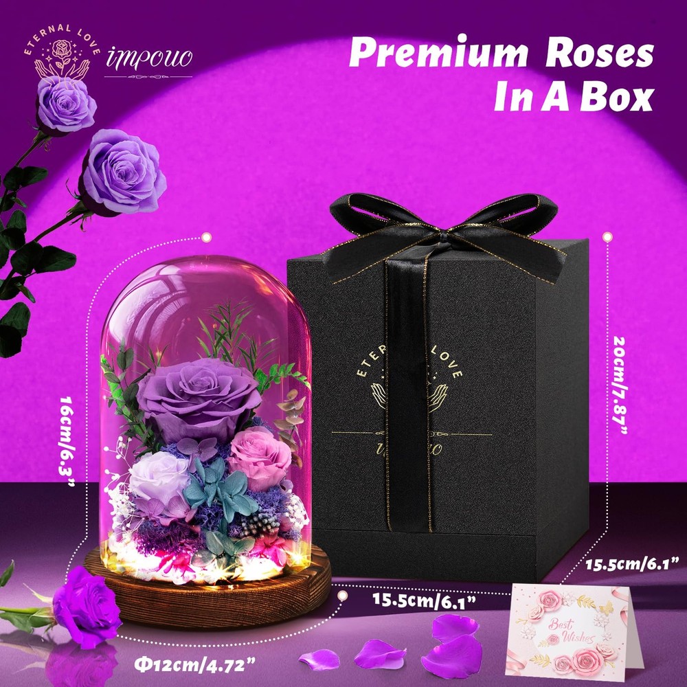 Christmas Flowers Gifts For Women Preserved Rose in Glass Dome, Forever Flowers, Birthday Gifts For Women, Wife, Mom, Grandma, Friend, Sister - Pink Natural Decoration that Evokes Positive Feelings: Having natural flowers in your space not only enhances its appearance but can also have a positive impact on your mood and creativity Breathable LeatRomantic Warm Light: This flowers needs to be powered by batteries (not included). When you switch on, gentle and warm white light will illuminate everywhere around the roses in the glass dome and surroundings, to create a dreamy and romantic atmosphere in the bedroom and living room. Our galaxy flower rose gift is a great choice to promote the happy and romantic vibe on anniversary, birthday, candlelight dinner, Christmas Eve, wedding party, etc.her Lining Long Lasting: Unlike fresh flowers, preserved flowers do not wilt or fade over time. They can be displayed indoors or outdoors, and will stay fresh and beautiful for an extended period of time Breathable LeatBeautiful Display: The flowers are arranged in a way that creates a stunning visual impact, and can be displayed on a table, shelf or any other suitable locationher Lining Breathable LeathUnique Gifts for Women: Our preserved flowers bouquet is a perfect gift for any occasion, including Valentine's Day, Mother's Day, Anniversary, Birthday, Christmas, New Year's and more. It is a timeless gift that will be cherished by your loved ones for years to come.er Lining