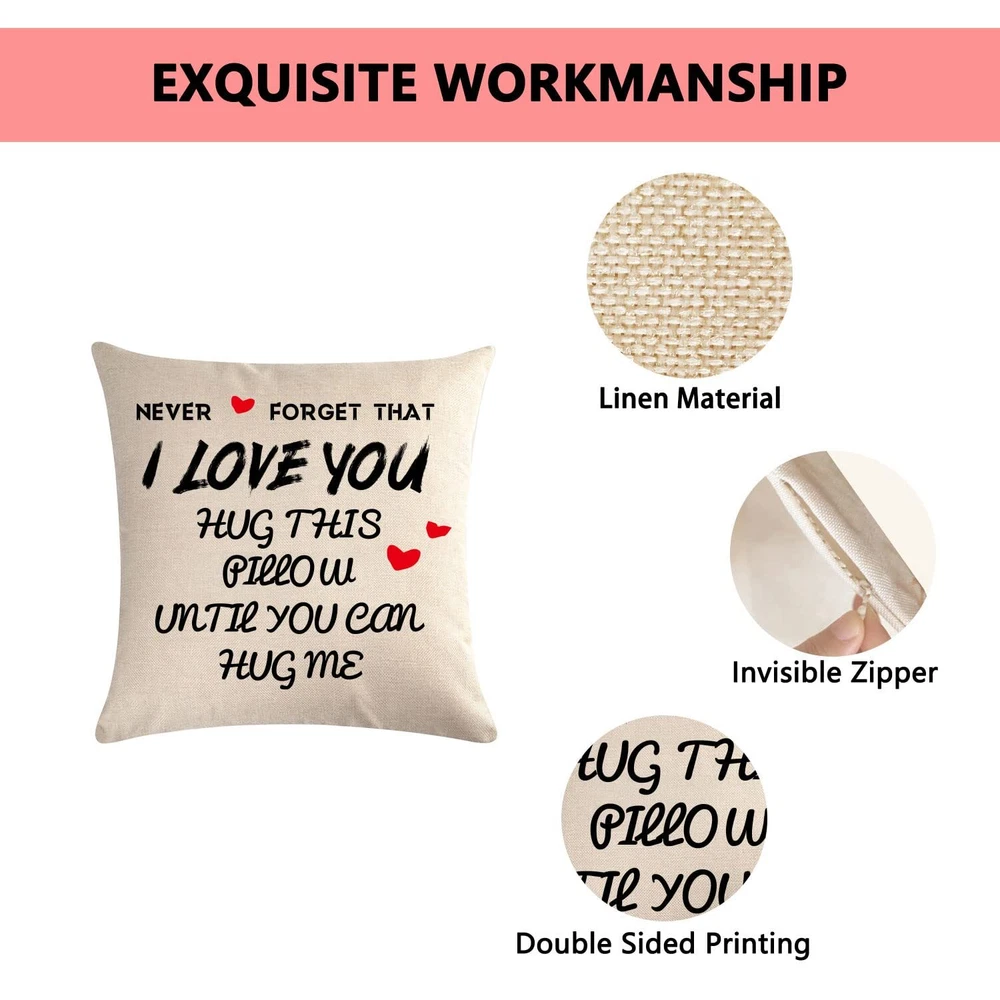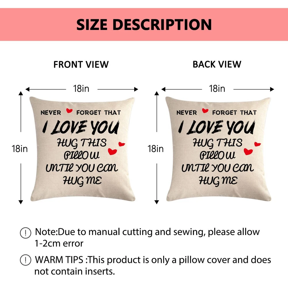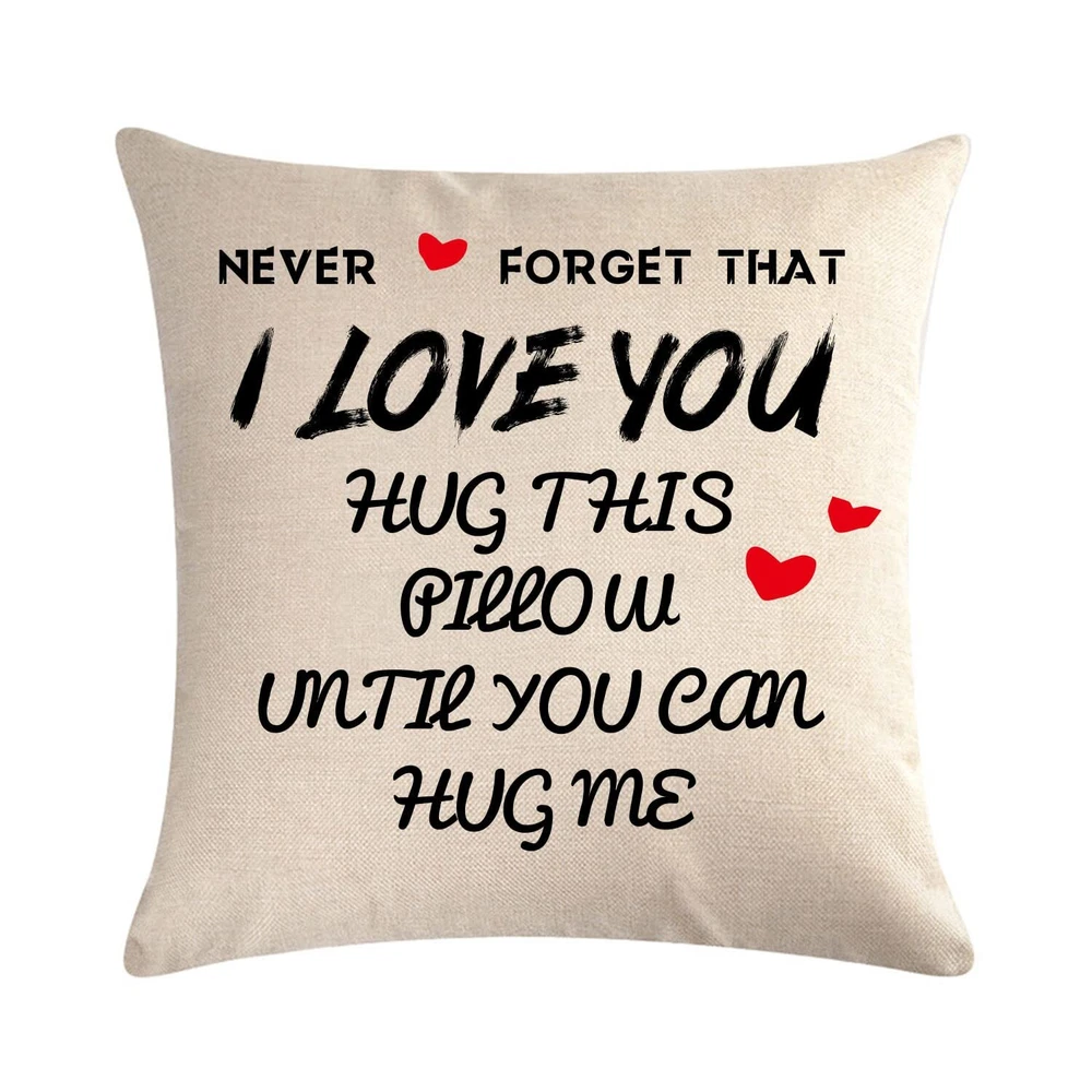NEVER FORGET THAT I LOVE YOU, HUG THIS PILLOW UNTIL YOU CAN HUG ME I LOVE YOU GIFTS FOR HIM OR HER Are you looking for a Thanksgiving, Birthday, Christmas or valentines day gifts for girlfriend, boyfriend, wife, husband, her, him? Do you want a cute girlfriend or wife gifts that her will love? This romantic gifts for her is what you need and it definitely won’t let you down. The cute and fine decoration design make it perfect for farmhouse décor with warmth and familiarity feeling and as ideal Christmas Gifts for her to remind the love between you. SPECIFICATION Material: 100% linen. Size:18x18 inch. Print: Double Sided Printing Thermal transfer. Remind: No insert, throw pillow cover only. OTHER SCENES USE OF THIS COUPLE GIFTS FOR HIM AND HER i love you gifts for her him, cool things under 10 dollars, the one where im the bride, love gifts for her, tarjetas de regalo, birthday ideas for girlfriend, thinking of you gifts for women, just because gifts for her, sister blanket, regalos para novia, i'm sorry gifts, i miss you gift for him her, girlfriend gifts, 3 year anniversary gifts for him, cushion case, anime pillow, hug this pillow until you can hug me pillow, wedding anniversary gifts for him.