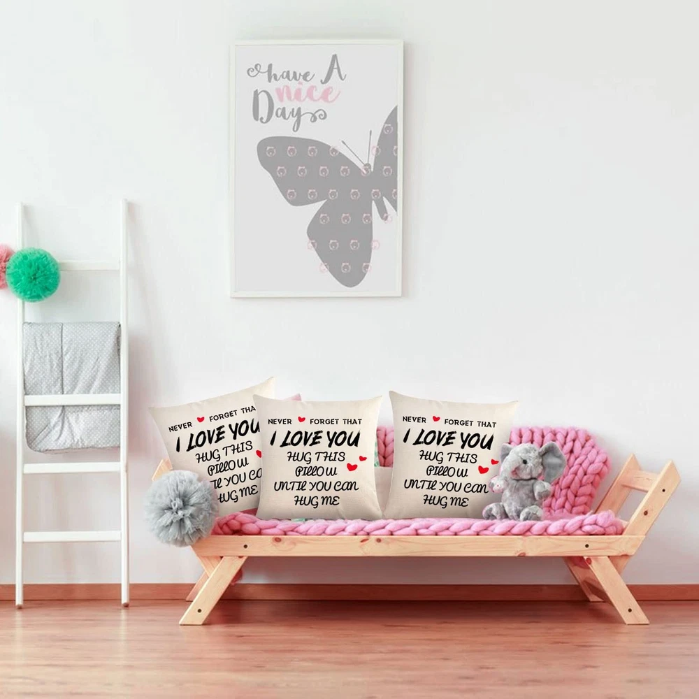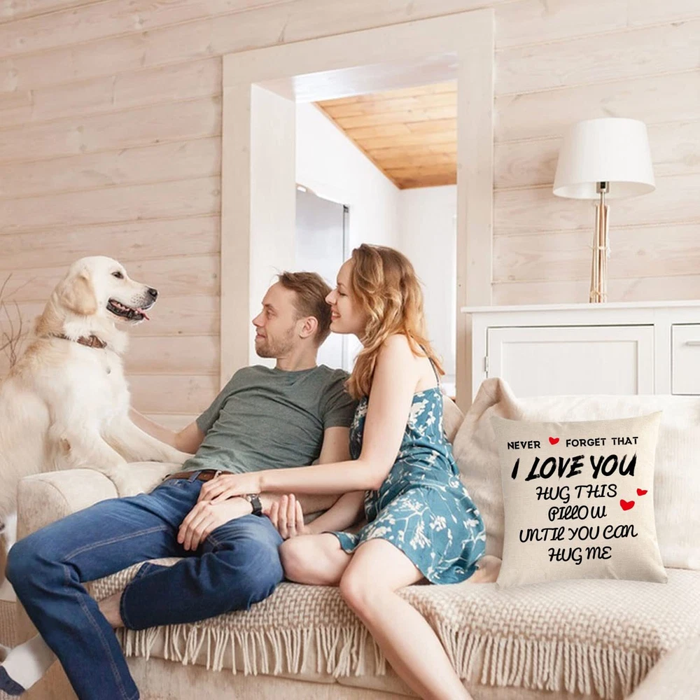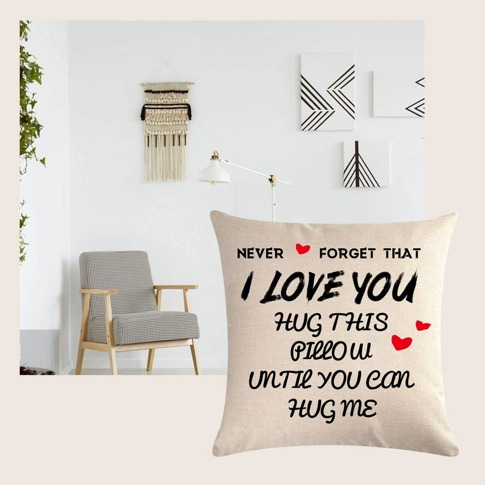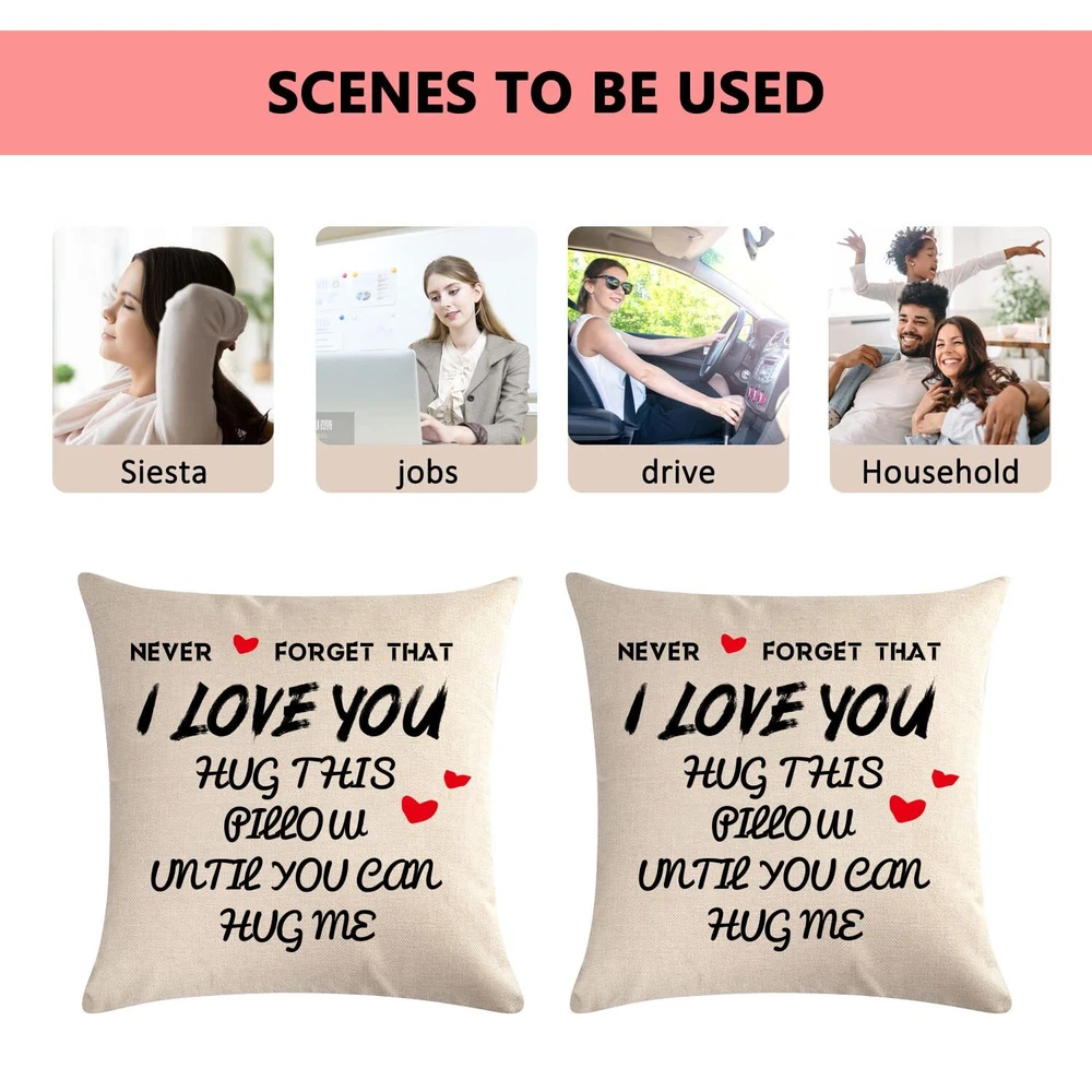NEVER FORGET THAT I LOVE YOU, HUG THIS PILLOW UNTIL YOU CAN HUG ME I LOVE YOU GIFTS FOR HIM OR HER Are you looking for a Thanksgiving, Birthday, Christmas or valentines day gifts for girlfriend, boyfriend, wife, husband, her, him? Do you want a cute girlfriend or wife gifts that her will love? This romantic gifts for her is what you need and it definitely won’t let you down. The cute and fine decoration design make it perfect for farmhouse décor with warmth and familiarity feeling and as ideal Christmas Gifts for her to remind the love between you. SPECIFICATION Material: 100% linen. Size:18x18 inch. Print: Double Sided Printing Thermal transfer. Remind: No insert, throw pillow cover only. OTHER SCENES USE OF THIS COUPLE GIFTS FOR HIM AND HER i love you gifts for her him, cool things under 10 dollars, the one where im the bride, love gifts for her, tarjetas de regalo, birthday ideas for girlfriend, thinking of you gifts for women, just because gifts for her, sister blanket, regalos para novia, i'm sorry gifts, i miss you gift for him her, girlfriend gifts, 3 year anniversary gifts for him, cushion case, anime pillow, hug this pillow until you can hug me pillow, wedding anniversary gifts for him.