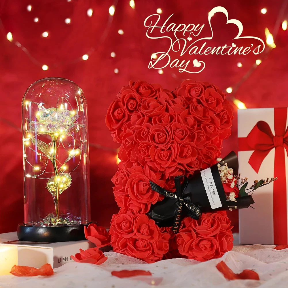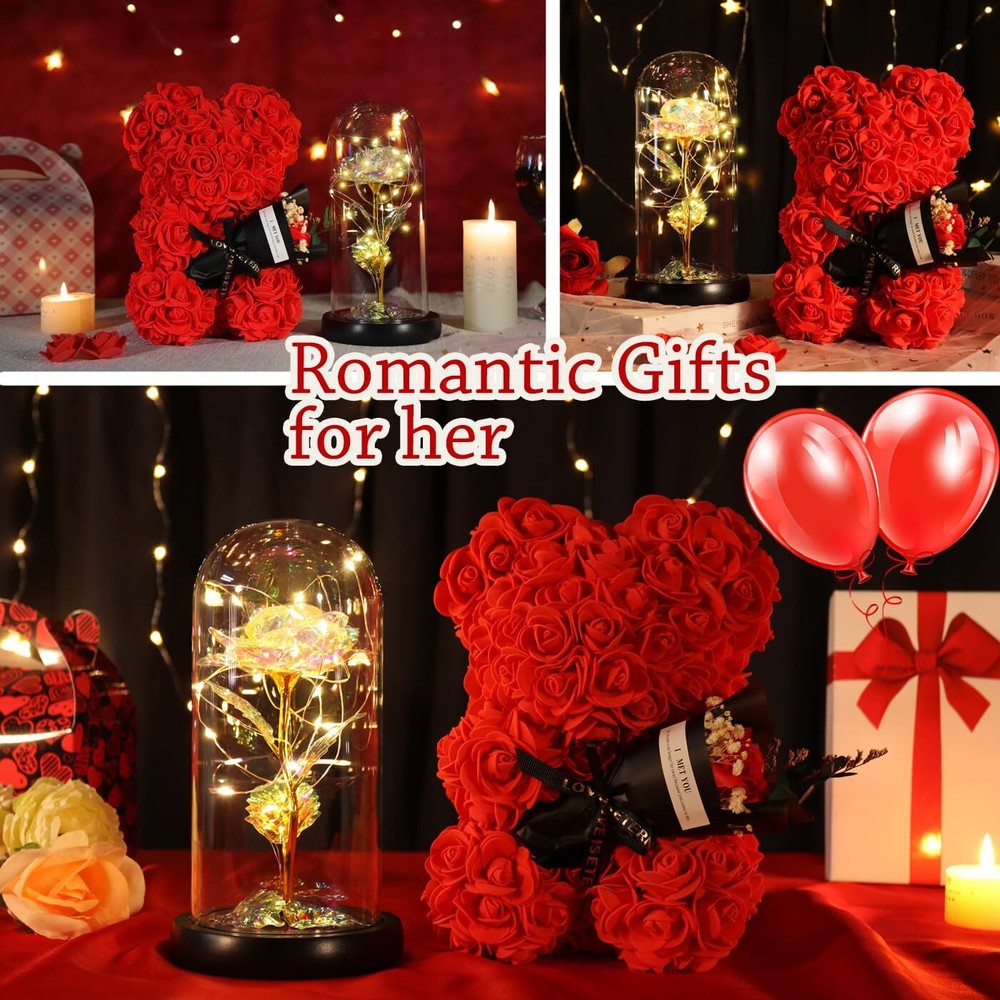 1. This stunning rose bear is such a thoughtful and unique gift! The delicate rose petals feel real and the bear itself is so soft and well-crafted. It’s way better than fresh flowers since it lasts forever, making it a beautiful keepsake for any special occasion. The luxurious design and deep red color make it extra romantic—perfect for expressing love that never fades. She’ll absolutely adore how elegant and heartfelt it is!