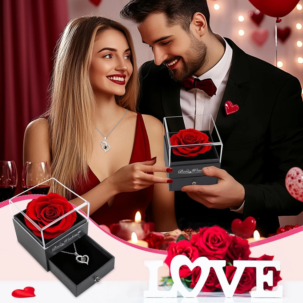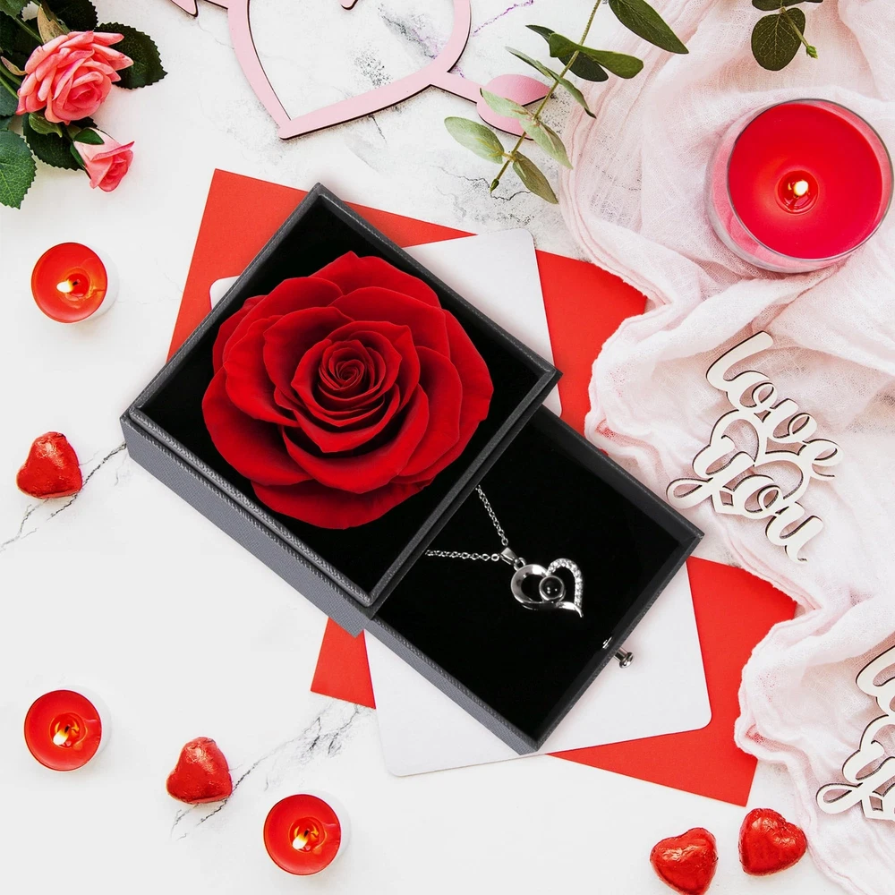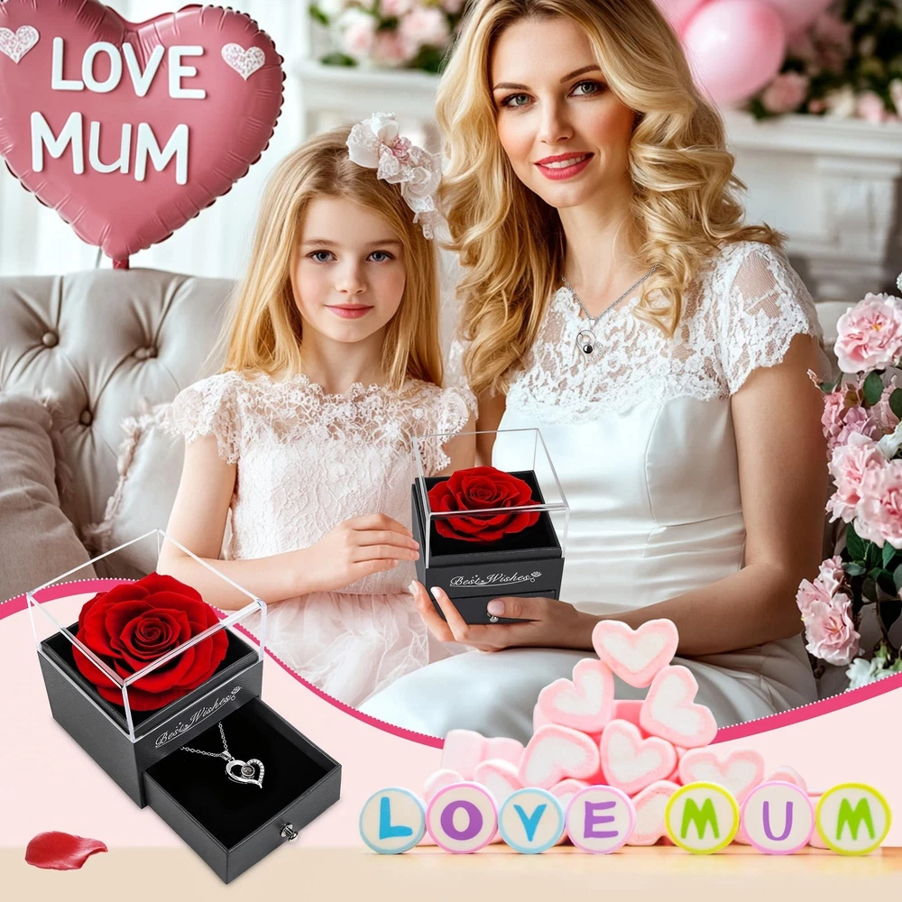 Valentines Day Rose Gifts for Her,Birthday Gifts for Women,Red Preserved Flowers Rose Gifts for Mom,Women Rose Gifts for Valentines Day,Real Rose Fresh Flower with Necklace for Wife,Mom,Anniversary Product Details Color: Red With Necklace Brand: Childom MPN: Does not apply UPC: Does not apply EAN: Does not apply Package Dimensions: 5 x 4.45 x 4.37 inches Item Weight: 8.8 ounces Country of Origin: China Batteries required: No Preserved Flowers Birthday Gifts For Women: Valentines day gifts for her.Valentines day gifts Gifts for mom from daughter.Mom Gifts,Mom birthday gifts for her.The real roses and the charm necklace were flawless for a lasting keepsake,cute rose flower made of fresh flower which don't have to water and it's supposed to last 3 to 5 years.Just keep rose gift out of the sun and away from heat and cooling vents.The aspect of the preserved flower rose makes it perfect to mark a memorable anniversary Roses Valentines Day Gifts For Her:Roses flower women birthday gifts,Valentines day gifts for women who have everything.Mom gifts for Valentines Day.I love you necklace 100 languages is very dainty and pretty.The necklace tells her everyday how much I love you in different languages if hold the pendant to the light.This women gifts also can be used as a keepsake to hold other jewelry that she has.A lovely gift that will be cherished by anyone who is special to the giver this Valentines day Wonderful Women Valentines Rose Gifts For All Occasions:Birthday gifts for her daughter, Mom birthday gifts for women.Anniversary gifts for her,romantic present for women.Preserved Flower roses is symbol of love,appreciation,caring;unique Valentines day gift for who you love: woman,mom,aunt,grandmother,sister,wife,fiancee,etc.Our rose flowers can also be great Valentines gifts,mom gifts for mother's day,thoughtful gifts for women,Fresh Flower rose gifts,birthday presents Awesome Rose Flower Gifts For Her Valentines Day: Great Valentines Day gifts for mom. Birthday gifts for women,Valentines day gifts for her.The beautiful preserved flower rose has bright colors,and good characters to their petals touch.It's a great gift for many occasions, such as Valentines Day Gifts,Mothers day gifts for her,warm gifts for mom,romantic gifts for girlfriend,women birthday gifts,anniversary gifts for wife,wedding gifts Beautiful Fresh Preserved Flower Rose Gifts For Women:Birthday gifts for grandma,wife anniversary gift ideas.Mom birthday gifts for her from daughter.Wife birthday gifts.The Valentines roses gifts for her are beautiful as well as useful,make Valentines day gifts very special,definitely an easy and sweet gift for the significant other,Great Something very thoughtful for a loved after the occasion for the Valentines day gifts passes the Valentines gift lives on and would cherish forever