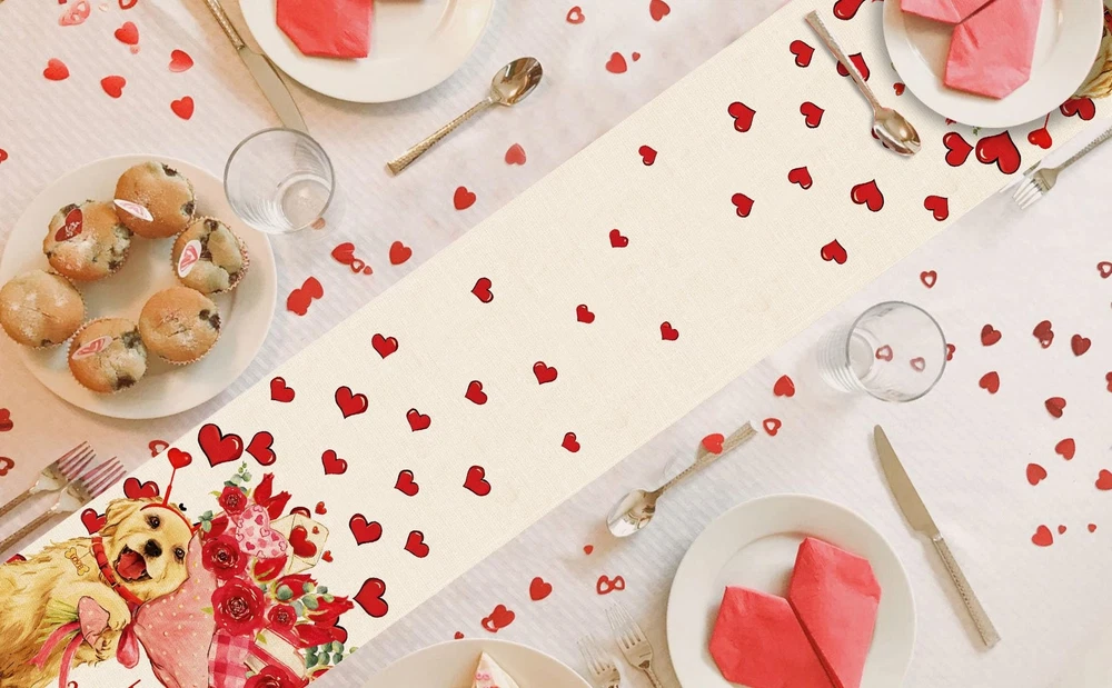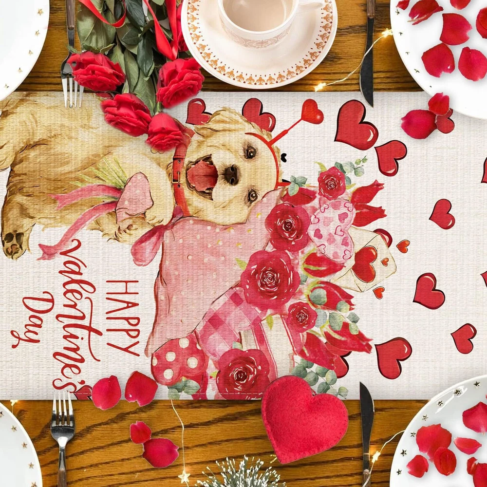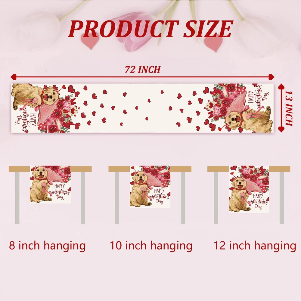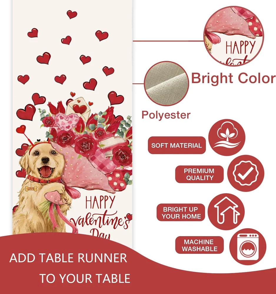 Valentine's Day Rose Golden Retriever Dog Table Runner-Red Love Wave Dots Design Seasonal Kitchen Dining Anniversary Wedding Holiday Table Decoration for Indoor/Outdoor Decor 13 x 72 Inch Description and features Package & Dimension: Elevate your dining table with a budget-friendly Valentine's Day-themed table runner, measuring 13 x 72 inches, to add a touch of love to your festive ambiance High-Quality Table Decor: Our stylish table scarf is made of 100% spun polyester, which is durable and eco-friendly. Measuring 13" x 72", with exquisite edges, this tablecloth features high-definition printing and bright colors that are not prone to fading, making it easy to match your home decor. Perfect for the Kitchen: Our table runner collection is a must-have for parties and dinners.The beautifully-looking burlap table runner can be used as a coffee table runner, dresser runner, and can be used for dining tables, shoe cabinets, and coffee tables, enhancing the festive atmosphere at gatherings and impressing your guests. Widely applicable: This long table runner is suitable for decorating sideboards, tables, buffet cabinets, TV tables, farm tables, coffee bars, buffet tables, dressing tables. It makes your life unique and elegant. Care Instructions: Machine washable, hand wash recommended.Dry on low heat, remove just before it is completely dry to minimize wrinkles. If necessary, use a low iron. Return Policy ⦿ All our products come with a 30-Day Return Policy. If you would like to return your item and you are within 30 days of the purchase, and it is still in its original condition, you can return the item by contacting us through eBay messaging. ⦿ If you are not 100% satisfied, please let us know the Detailed Problem,We will give you a 100% satisfactory solution ⦿ If you received an incorrect, damaged, defective, or item not as described, contact us for a partial/full refund or replacement on our cost. ⦿ Free Shipping and Free Return 30-Days Money Back Guarantee. ☎ For all returned products, buyers MUST contact us for the returning address. Shipping ⦿ We do not ship to a different address. we will ship to the address you provide on the ebay only. Please check your address before purchase. ⦿ It should take 2-4 business days for the product to reach your destination. ⦿ If the product doesn't reach your destination within the time limit, please give it an additional 1-2 business days in case of postal delays and/or possible technical issues. ⦿ We use a selection of shipping services such as UPS, FedEx, USPS etc. ⦿ We ship only to the 48 contiguous states of America. We do not ship to Hawaii, Alaska, US Protectorates, APO/FPO addresses. Local pickups are not offered. ☎ If it takes any longer than that, please do not hesitate to contact us to resolve the issues. Contact us ☎ Please contact us via eBay message. And your message will be replied within 1 business days. For any queries, please feel free to contact us, we will get back to you as quickly as possible. Customer 100% satisfaction is our first priority and goal. We are always working hard for maintain high standards of excellence and resolve your problem in best way. So your POSITIVE FEEDBACK is very important. If you have any problem of the item, please feel free to let us know before leaving your feedback. We will try our best to solve your problem. About us We are here to give you quality products, competitive pricing and amazing service in order to make sure you get the best deal online, Thank you for your business and the opportunity to serve you.