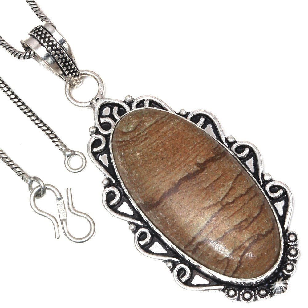 This stunning pendant features a gorgeous picture jasper gemstone set in elegant 925 silver, making it a perfect Valentine’s Day gift. The 2.75" piece is beautifully crafted with natural stone details, giving it a unique and earthy charm. The quality is outstanding—solid silver and a genuine gemstone that catches the eye. It’s lightweight yet feels luxurious, ideal for everyday wear or special occasions. The craftsmanship is excellent, and the design is timeless. A must-have for anyone who loves meaningful, high-quality jewelry!