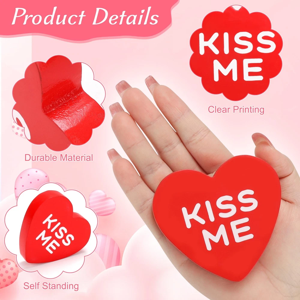 Complete Valentine's Set: Unbox 6 beautifully crafted wooden heart decor pieces that bring a warm, romantic touch to your Valentine's Day celebration Romantic Heart Design: Featuring classic heart shapes in pink, red, and white, each heart is adorned with heartfelt phrases like "XOXO," "HUG ME," "BE MINE," and "LOVE YOU" for a truly romantic atmosphere Premium Craftsmanship: Made from high-quality, durable wood with a smooth finish, these pieces are expertly painted in vibrant, fade-resistant colors. Safe, long-lasting, and perfect for creating an elegant vibe Perfect Dimensions: Each heart measures 3" x 2.8" x 0.6", making them ideal for decorating fireplaces, coffee tables, bookshelves, or tiered trays. Compact yet eye-catching for any space. Versatile Valentine's Decor: Perfect for Valentine's Day, weddings, anniversaries, or parties. These heart-shaped centerpieces add a loving touch that’s sure to surprise and delight your loved ones.