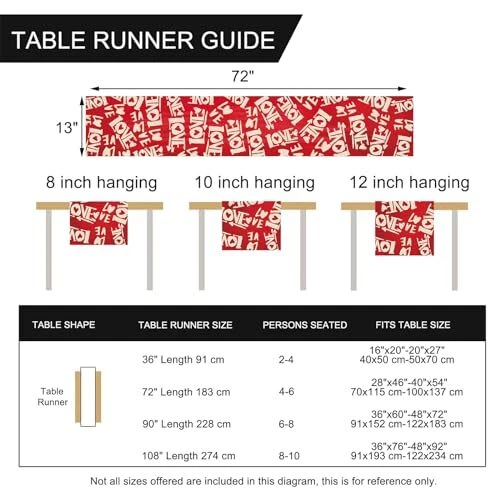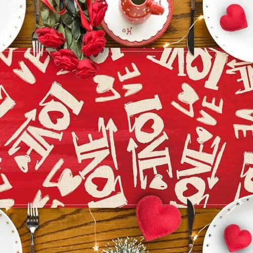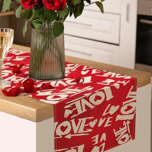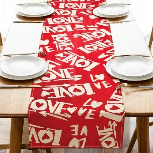 Return Policy Fast Delivery Trusted seller Valentine's Day Love White Table Runner, Red Love Hearts Arrows Scarf Kitchen Dining Table Decor, Wedding Anniversary Holiday Burlap Home Decoration Indoor Outdoor Party Supply 13x72 Inches Product Description Polyester Uniquely Designed Table Runner: Our rustic farmhouse linen tabletop runner adopts the most popular element design nowadays. Use the Valentine's Day themed table decorations we provide to decorate your coffee table, dining table, buffet table and kitchen to express your positive attitude towards life. Printed with red love hearts, white arrows patterns and words of "love", our table runner will be the perfect decor for Valentine's Day High Quality Table Decor: This stylish table scarf is made of 100% spun polyester, durable and eco-friendly. 13" x 72" with exquisite edges. The tabletop tablecloth uses high-definition printing and bright colors are not easy to fade, and it is easy to match your house decoration. Common styles are suitable for spring, summer, autumn and winter Perfect Kitchen Decor: Our table collection is a must-have for parties and dinners. The beautifully-looking burlap table runner can be used as coffee table runner, dresser runner, and be used for dining table, shoe cabinet, and coffee table decoration, which can enhance the festive atmosp at the party and impress your guests. Idea for holiday and housewarming gift Widely Use: The long table runner is suitable for decorating sideboards, tables, buffet cabinets, TV tables, farm tables, coffee bars, buffet tables, dressing tables, making your life unique and elegant. This camino de mesa is not only suitable for daily dining, but also suitable for family gatherings, indoor and outdoor parties on holidays like Christmas Thanksgiving Easter and July 4th, etc Care Instructions: Machine washable, hand wash recommended. Dry on low heat, remove just before it is completely dry to minimize wrinkles, low iron if needed Shipping Returns Payment Shipping Shipping is FREE to all addresses other than APO/PO boxes in the lower 48 states. All our stock ships from US-based warehouses. Shipped via USPS or UPS (depending on location and package weight) Unless stated otherwise, all orders will ship within 24-72 hours of your payment being processed. Check our feedback to see the great reviews of FAST shipping we offer. Returns Seller does not accept returns Payment We currently accept payment via eBay managed payments only. Once payment is cleared, we will dispatch your shipment within 1-3 business days. Please refer to the "Shipping" tab for more information regarding shipping speed to your destination.