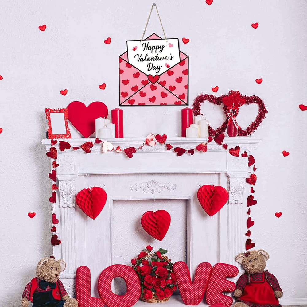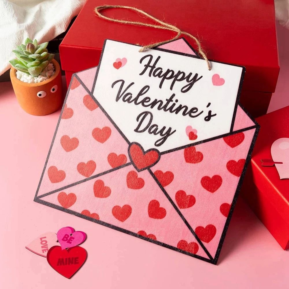 Valentine's Day Wooden Envelope Door Sign Front Porch Decor D6C5