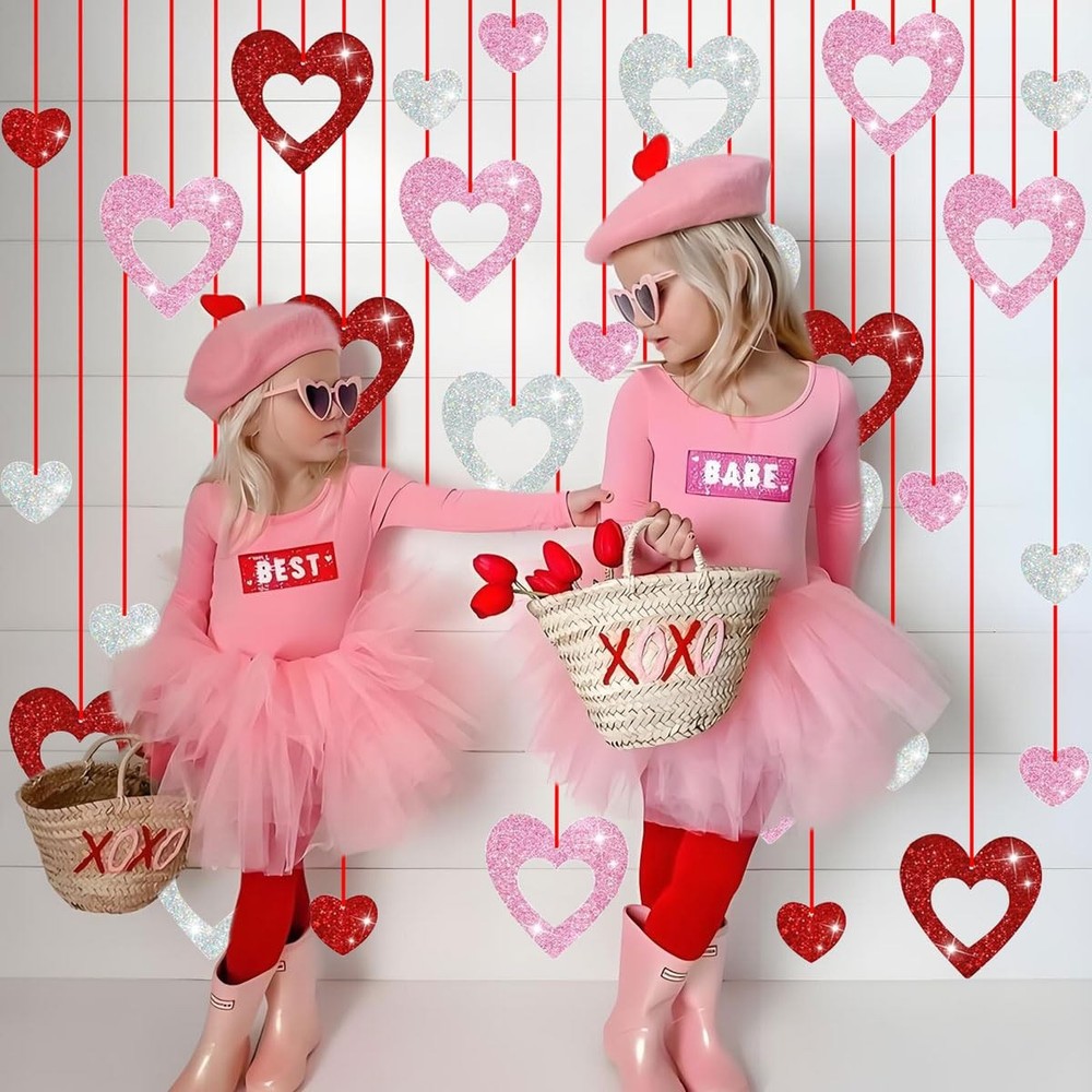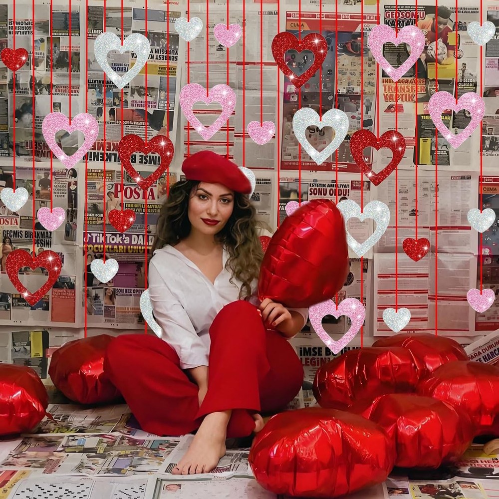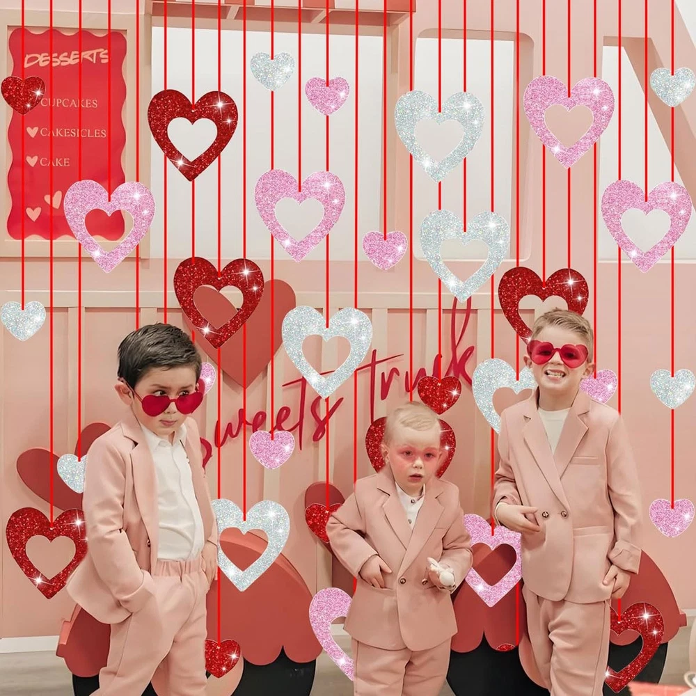 Product Description Valentines Decorations: Do you want an eye-catching happy Valentine's Day party decorations? This hanging hearts decorations are nice and ideal additions for your valentine party and create a romantic atmosphere, highlight your gathering,bring surprise for your loved ones. Grace your valentines day with beautiful heart hanging that can be highlight of your valentines decorations. Make your party night an event to remember. Surprise her/him with a romantic Valentines day and definitely, he/she will love the stunning impact of thisvalentines day decor! What you will get: You will get pack of 36 valentines decorations, 18pcs big hollow hearts and 18pcs small solid hears, with 3 colors red silver and pink heart. Need DIY. Big hollow hearts size 5.9×5.9 inch, small solid hears size 3.34×3.34 inch. High-Quality Materials: This valentines hanging decorations are made of high quality paper, thick and sturdy, double-sided glitter, eco-friendly, lightweight and reusable. Easy to Use: Just strung the glitter heart with the included hanging red strings; you can easily hang them anywhere you want to decorate. A ready to hang as valentines day decorations window, just attach and detach it in the perfect place. DIY Fun: This romantic heart decorations will complete your romantic decorations for special night. You can be used as office room, shopping mall, window display, party decorations in Valentine's Day, wedding, Anniversary, Mother's Day...Express your affection with our charming love heart banner, ideal for celebrations, weddings, or engagement parties. Combined with red silver and pink lovely heart design, adds a pop of color and romance to any space, perfect for valentine's day party, wedding, home decor, engagement parties, anniversaries, birthday, bring a sweet feeling to you and your lover, wish you have a sweet valentine's day party. Add more romantic and sweet touch. 【Valentines Day Decor】You will get pack of 36 valentines decorations, 18 Pcs big hollow hearts and 18 pcs small solid hears, with 3 colors red silver and pink heart. Need DIY. Big hollow hearts size 5.9×5.9 inch, small solid hears size 3.34×3.34 inch. Hang the lovely heart hanging garlands on your party to add more romantic and sweet touch to your valentines decorations. 【High Quality Materials】This valentines hanging decorations are made of high quality paper, thick and sturdy, double-sided glitter, eco-friendly, lightweight and reusable, can hang for serval days. When the party is over, you can take them down and store for next time use. 【Suitable for Many Occasions】The vibrant red, pink and silver hearts of the garland adds a pop of color and romance to any space. A great ideal choice for adding a romantic touch to your Valentine's Day celebration. Perfect for hunging from branches and ceilings, or open against a wall, hanging up dessert tables, backdrops, and the overall party space,the adornment of the integral collocation of color is also very perfect place you want to decorate. 【Easy to Use】Just strung the glitter heart with the included hanging red strings; you can easily hang them anywhere you want to decorate. When you hang them in your windows, these Heart Valentines garland will spin with the breeze and look amazing. 【Express Your Love】This romantic heart decorations will complete your romantic decorations for special night. You can be used as office room, shopping mall, window display, party decorations in Valentine's Day, wedding, Anniversary, Mother's Day...Express your affection with our charming love heart banner, ideal for celebrations, weddings, or engagement parties.