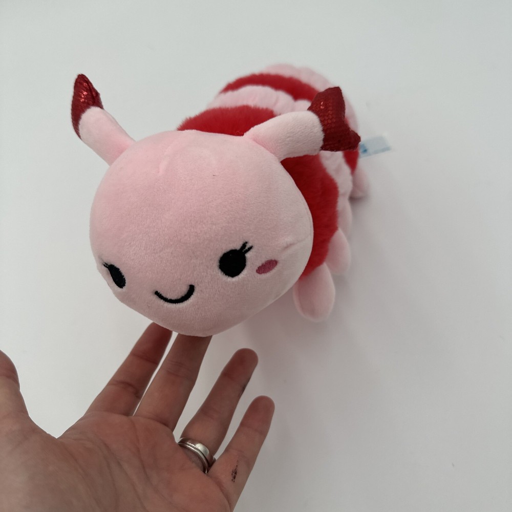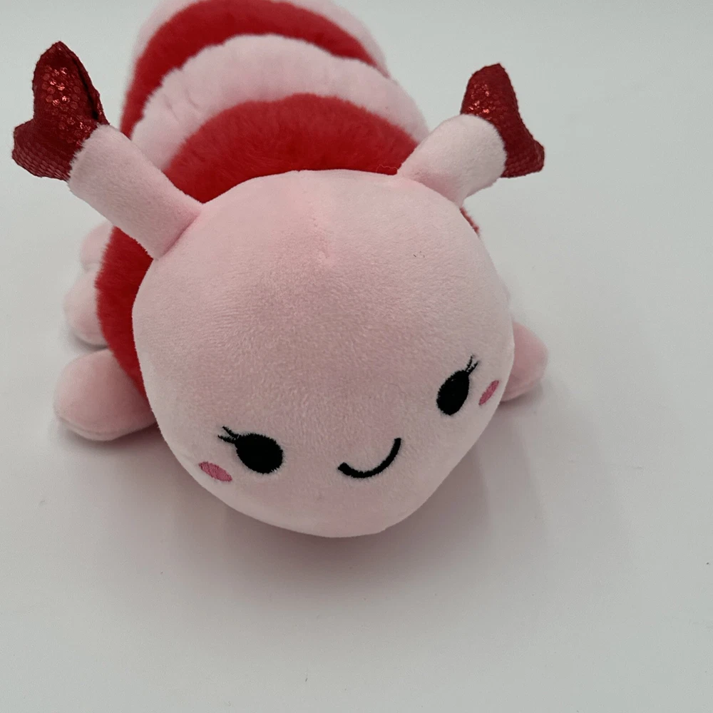 Celebrate Valentine's Day with a whimsical touch of nature with our Valentines Love Caterpillar. Dressed in a charming pink hue, this plush toy spans a cozy size of approximately 12 inches, making it a perfect companion for cuddle time or a heartfelt gift for someone special. The design features adorable heart-shaped antennae, adding a romantic twist to this lovable caterpillar. Whether it's for a child or a child at heart, this stuffed animal is sure to bring a smile and a touch of whimsy to any space. From playtime to display, it's a delightful addition to any collection of stuffed animals.