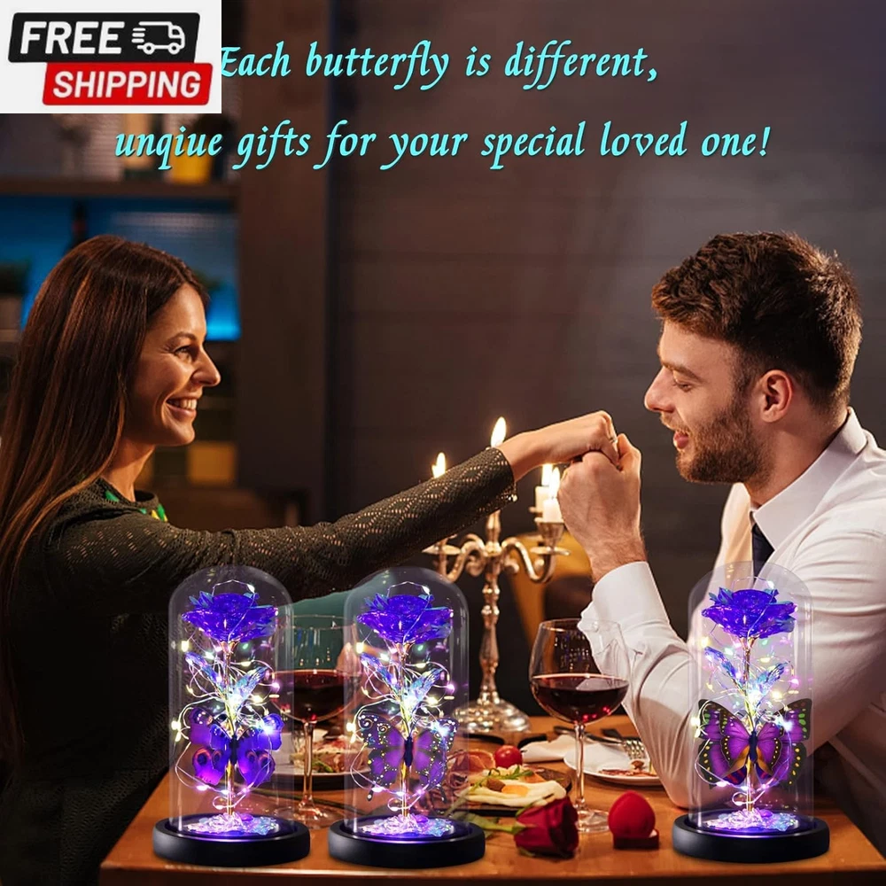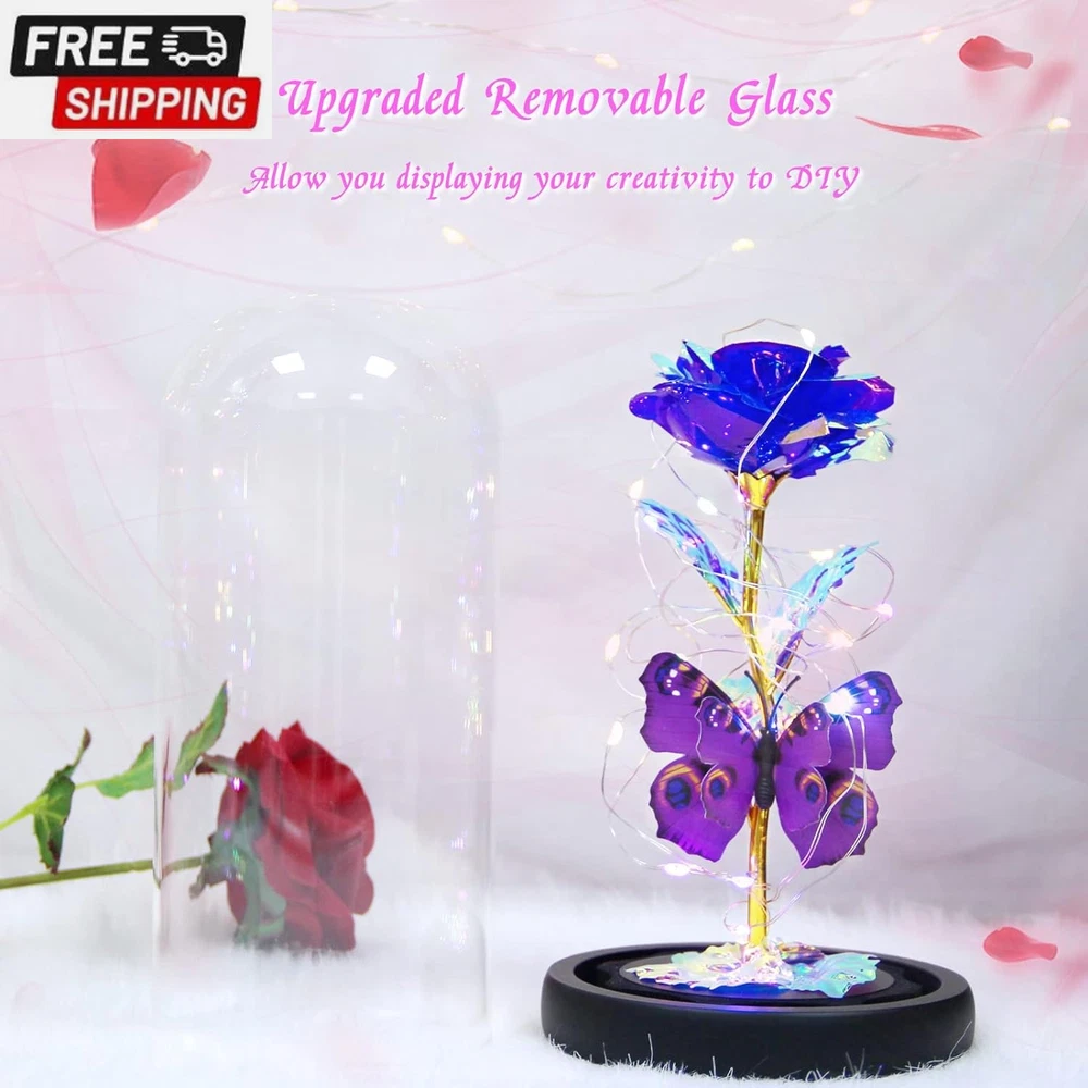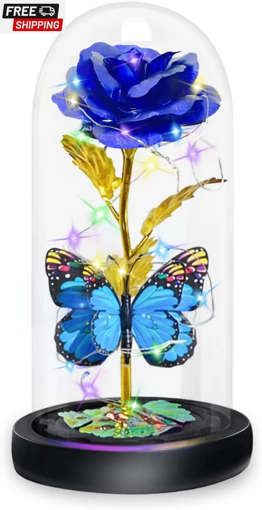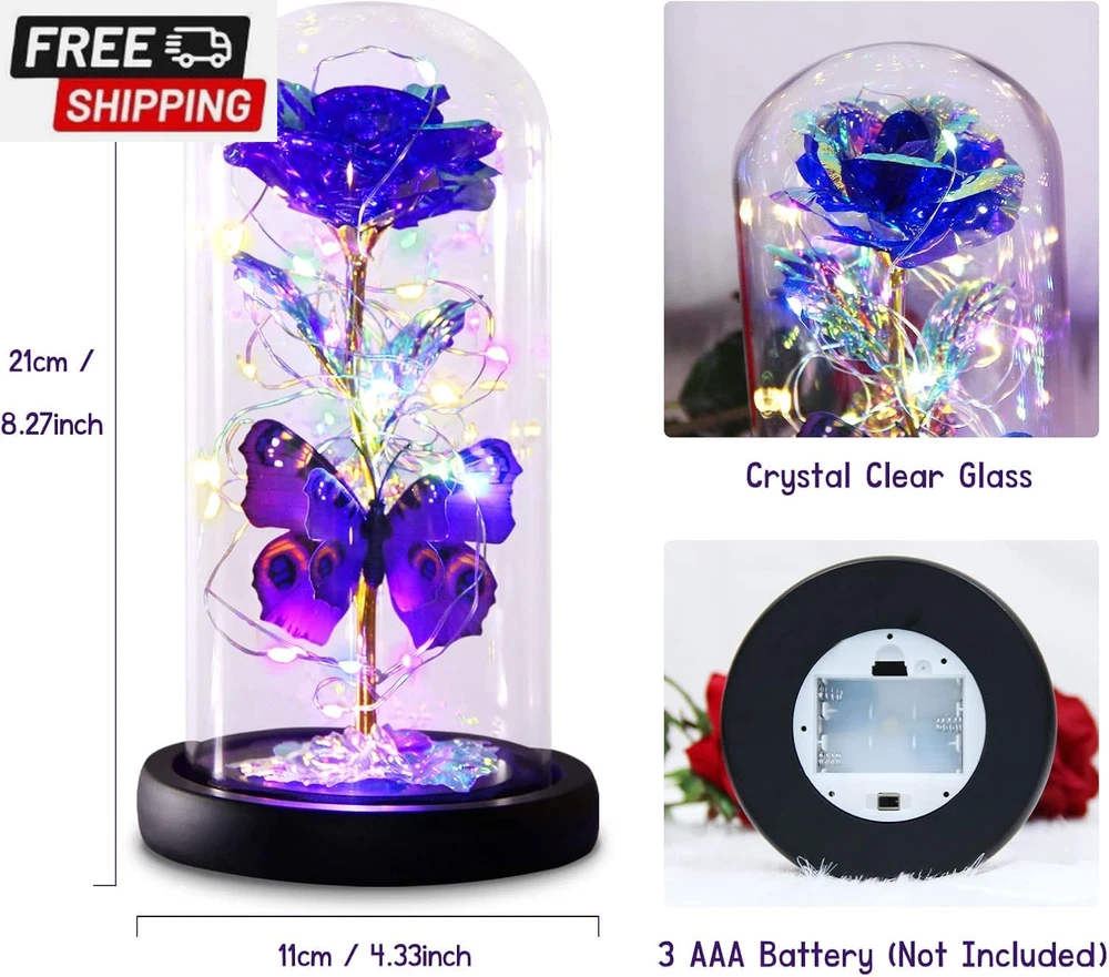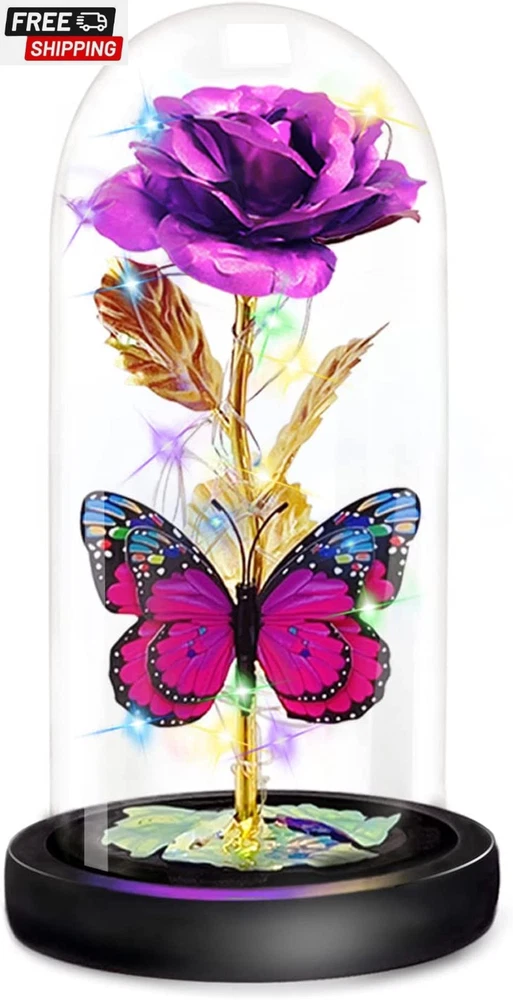 Valentines Rose Gifts for Her Thanksgiving Christmas Flower Gifts for Women, Galaxy Purple Butterfly Rose in Glass Dome, Light up Forever Rose Birthday Gifts for Mom Anniversary Eternal Rose Gift Light Up Rose Gifts for Her, Christmas Flower Light Gifts for Women 💝 Valentines Day Flower Gifts for Her: Purple eternal rose symbolize wisdom, a deep passion and mature romance. Each unique designed purple butterfly is different, just for her, for your special loved one, tug at her heartstrings. Perfect as birthday gifts for women, valentines gifts for girlfriend, mothers day gifts for mom grandma, anniversary gifts for her, wedding gifts, Christmas gifts, womens gifts, giving her a love surprise, tell her "I love you" with eternal rose flower present. 💝 Unique Glass Rose Gifts for Women: Nothing gets the romance flowing like glass eternal rose. With Highly transparent glass, 360° shows timeless and elegant of roses completely. Upgraded 2022 removable glass dome, allow you displaying your creativity to DIY, which can touch her heart deeply. Eternal rose witness everlasting love, amazing gifts to express and promise your love to your girlfriend, wife, fiancee, daughter, mother, grandma, sister, teacher, friend and even yourself. 💝 Elegant Valentines Decor Night Light: The purple glass rose is not only beautiful valentines dating decorations , birthday decorations, wedding decorations, but also a warm night light. In the sunshine, purple rose and butterfly are gorgeous, making the living room, bedroom, office, wedding hall, birthday party or holiday scenes filled with magic and life. At night, the purple rose is surroundred rainbow lights, accompany her to sleep peacefully. (Powered by 3 AAA batteries (not included)) 💝 Gifting Made Easy: A meaningful gift, an unique love. A glass rose gift is ready to give her comes in a elegant blue gifts box. Writing the words of blessing and love in the exquisite greeting card, image her face lit up, her sweet smile will be remembered and treasured forever! Best gifts for girlfriend, friendship gifts for women, valentines day gifts for wife, beauty and the beast rose gift, Mothers day, birthday gifts for mom grandma, Valentines rose gifts for gf. Product Description Valentines Day Gifts For Her - Galaxy Purple Rose in Glass Dome. I love you gifts for girlfriend, love gifts for wife, gifts for mom, gifts for grandma, gifts for daughter. The Best Gift Idea for Mom, Mothers Day Gifts from Daughter, Son and Husband. " Happy Mother's Day! I LOVE YOU! " All glory and pride in the world are from mother. Mother's love for children is greatest in the world. On her day, give this light-up eternal rose to Mom and say "Thank you, I love you!" Great Mothers day gift ideas for mom, wife, grandma, mother-in-law. This galaxy purple rose is fixed on the most beautiful moment, with unique patterns butterfly and rainbow color led string lights on it, it will be never-fading. A beautiful gift for confession of love A Love Gift for Her, Valentines day gifts for woman, valentine gifts for her, mother's day gifts, mom gift from daughter and son, long distance relationships gifts, wedding gifts for couple, romantic valentines gift for wife, birthday gifts for women, grandma gifts, sister gifts, wife valentines day gifts, Christmas gifts, anniversary gifts, wedding gifts, thanksgiving gifts for women ... The rose that can be collected for a lifetime! The rose is fixed in the most beautiful moment, and will accompany your loved one forever. Each product can represent your sincere heart. If your loved one likes ‘Beauty and the Beast’, this is the best gift choice. Every butterfly is unique with different nice patterns, means you are the only one! The glass dome can be fixed or removed, you can open it, add in your own little ornaments, and re-wind the led lights string to be the shape you want. The glass rose with butterfly lights is packed in beautiful gift box with a greeting card. You can directly send this ideal gift to her. This is the best gift choice for your loved. Rose decoration The roses are very beautiful wherever they are placed, bringing a beautiful and romantic visual experience. Valentines day decor / Dating decor / Happy Mother's Day Celebrating / Christmas decor / party decoration / birthday cake decor / table decoration / wedding decor / living room decor / Girls bedroom decor / dressing table decor / candle dinner decor / romantic Proposal scene decor You can DIY Open the glass dome and add a little creativity of your own to make the rose different and more meaningful! Shipping Fast shipping is very important for us. Our standard US shipping service is FREE. Your order will be shipped within 2-3 business days upon full payment received. Your order will be delivered within 2-3 business days after the handling time. We only ship to the confirmed PayPal address. We reserve the right to cancel any order for any reason at any time. We are not responsible for undeliverable addresses. Returns and payment We offer a 30 days return policy from checkout winning date. We allow only PayPal as payment method FeedBack Your feedback very important to us, after you get your package and you are satisfied with our service please leave us positive feedback If you have any problem with your order / any questions please before leave any type of feedback For any questions, using eBay contact system Please visit our eBay store to check out other items for sale! Thank you for shopping at our store.