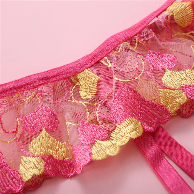 NEW Sexy Gauze Sleeves Off Shoulder Lingerie Set Hollow Out Garters Bra G-string