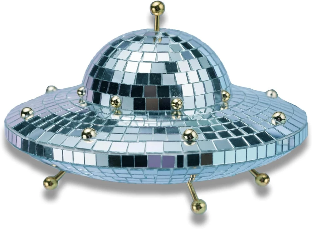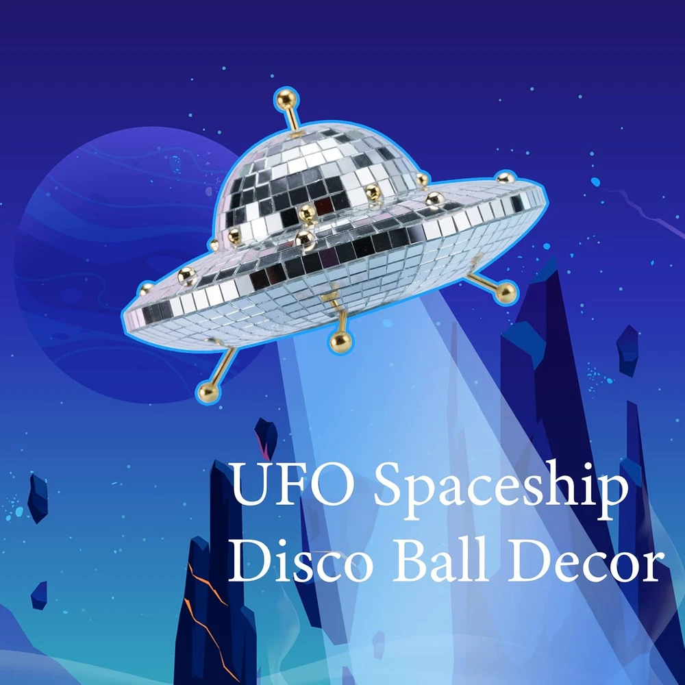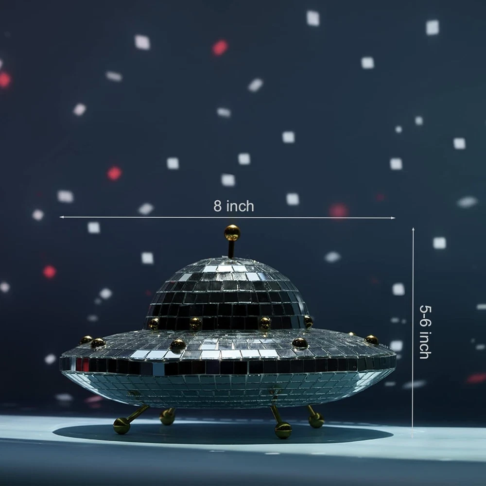 Valentines-Day Gift UFO-Shaped Disco-Ball Home-Décor - Mirror Decorations Ufo Product Details Color: Ufo Brand: Favation Theme: Home Decor Material: Foam Style: Modern Occasion: Wedding Product Dimensions: 8"D x 8"W x 6"H Recommended Uses For Product: Home, Outdoor Mounting Type: Tabletop Cartoon Character: Halloween Finish Type: Polished Special Feature: Handmade Included Components: Shade included Item Weight: 13.43 Ounces Product Care Instructions: Wipe Clean Collection Name: All Seasons: All Seasons Number of Items: 1 Manufacturer: FAVATION Part Number: DB-UFO Item Weight: 13.4 ounces Country of Origin: China Item model number: F-UFO Collection: All Finish types: Polished Special Features: Handmade Shade Material: glass Power Source: wired_electric Batteries Included?: No Batteries Required?: No Type of Bulb: Led Product Dimensions : 8 x 8 x 6 inches; 13.43 ounces Item model number : F-UFO Manufacturer : FAVATION Country of Origin : China Color: Ufo Brand: Favation Theme: Home Decor Material: Foam Style: Modern Handmade UFO Disco Spaceship: Each spaceship-shaped disco is purely handmade, showing more love and appreciation to the receiver. Some flaws may caused due to the handmade craftsmanship, but this is more ingenious and attentive to show its charming, making our disco balls more unique and quirkiness. UFO Spaceship-Shaped Disco Ball: These disco ball are made of high density foam and finished with the mirror glass tiles guled individually on it. Our disco ball decor is light, resuable and not easy to be deformed. Come with size of 8 x 6 inch, shining and twinkling effects brings us joy and happiness. Disco Ball Decor: This disco ball ornament is a great addition for any type of occasions. These disco ball party decorations are suit for variety events, perfect for weddings, birthdays, dancing parties, theme parties,gratuations,nightclubs, bars, Thanksgiving, New Year, Christmas etc, which deliver just the right amount of luminosity and add fun atmosphere. Funky Home Disco Ball Decor : This UFO funky home decor is able to reflect the light from its surface to every corner of house. Its surroundings with dazzling bits, flickering and shining, brightens and livens up our space instantly. Let's enjoy vibrant and lively atmosphere! UFO Decor Outdoor and Indoor: Place it indoor in the bar, clubs, coffee shop, living room, bedroom, office or place it outdoor in the patio, balcony, window, garden, yard, outdoor wedding and partie to help creating the magical atmosphere, adds luster and no doubt our friends will love it. 2022 Adorable Novelty Gifts: Innovative spaceship decor creats a charming and shining visual effect, help to light up the atmosphere. A great special gift for lovers, friends, colleagues, mother and father, families, or for Valentine, Halloween, New Year, anniversary, graduation that will give us unforgettable memories. Easy to Install: UFO disco comes with 5 metal sticks and 1 UFO spaceship body part. Just need to insert 1 metal stick on the top of disco ball and 4 metal stick on the bottom where has been reserved in advance then become the disco UFO.