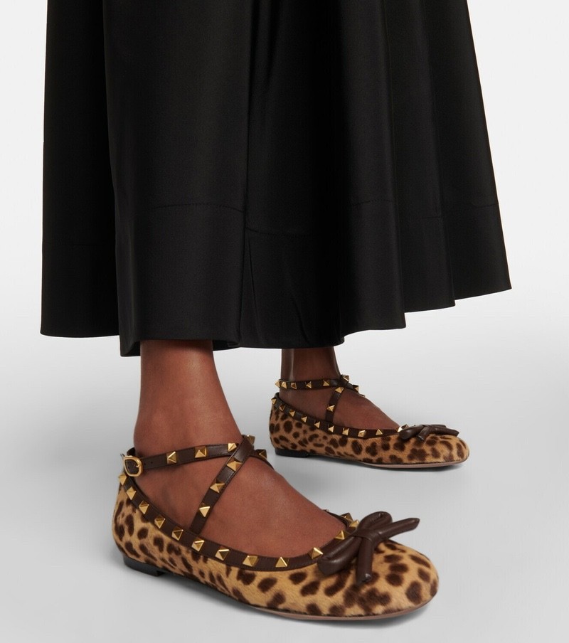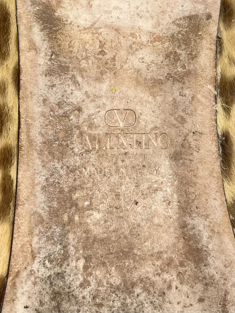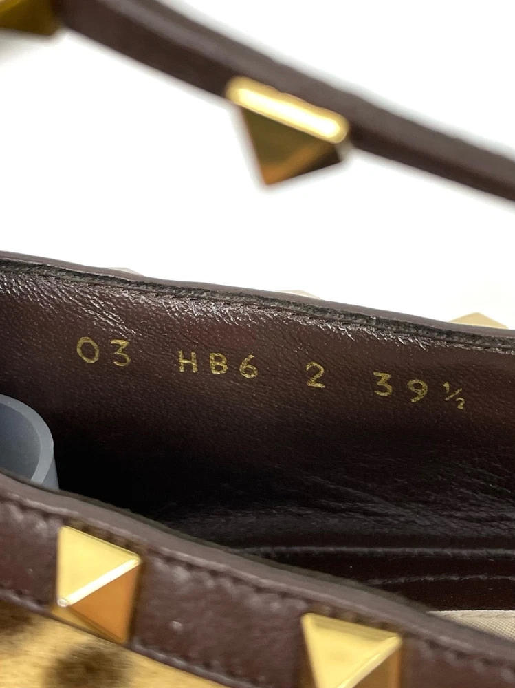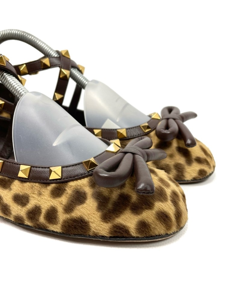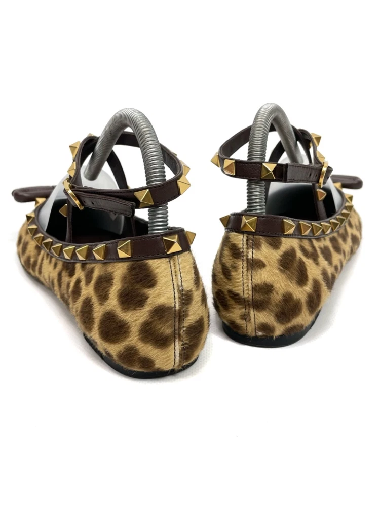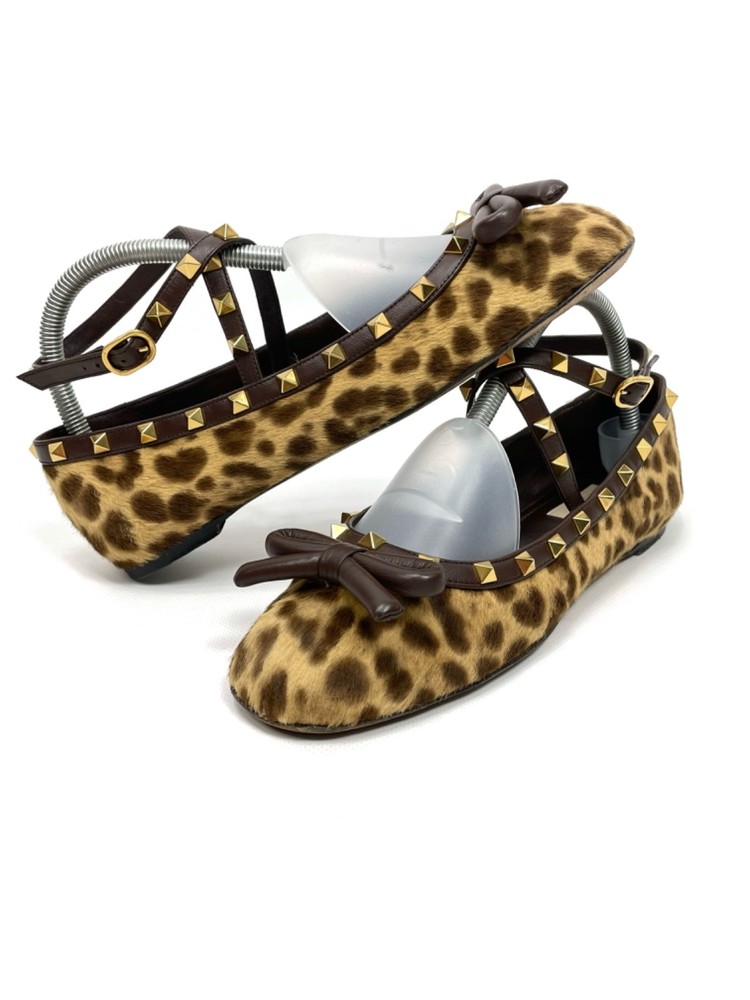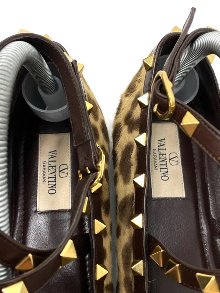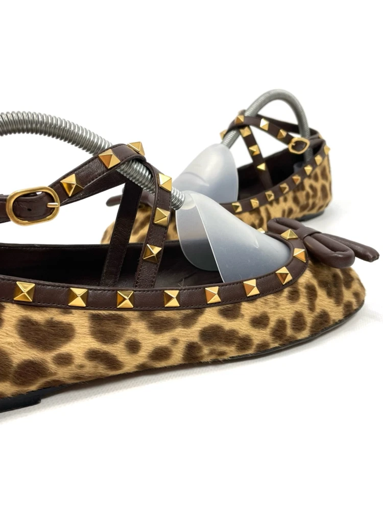 Valentino Garavani Rockstud Pony Hair Ballet Flats – Leopard – Size IT 39.5 – Made in Italy – Good Condition Iconic Valentino Garavani Rockstud ballet flats crafted from luxurious leopard-print pony hair with signature brown leather trim and gold-tone pyramid studs. This elegant yet edgy design perfectly reflects Valentino’s recognizable Rockstud aesthetic, combining feminine detailing with bold luxury styling. The flats feature a classic ballet silhouette with a delicate bow at the toe and an adjustable ankle strap for a secure and refined fit. A timeless designer footwear piece that easily elevates both casual and dressy outfits. ⸻ Details: • Brand: Valentino Garavani • Item: Rockstud Pony Hair Ballet Flats • Size: IT 39.5 (please check measurements) • Color: Leopard Print / Brown Leather / Gold-tone Studs • Material / Fabric: Pony Hair Leather Upper with Leather Trim • Made in: Italy • Features: • Signature Valentino Rockstud pyramid studs • Luxurious leopard pony hair upper • Feminine bow detail at toe • Adjustable ankle strap closure • Classic ballet flat silhouette • Condition: Good pre-owned condition — previously worn with normal signs of careful use (see photos) ⸻ Measurements (approx.): • Insole Length: approx. 25 cm Please check measurements before purchasing. ⸻ Shipping Information: • Carrier: Ukrposhta (Ukrainian Postal Service) • Handling Time: Ships within 1 business day • Delivery Estimates: • USA & Europe: 10–21 business days • Worldwide: 10–28 business days • Tracking number provided