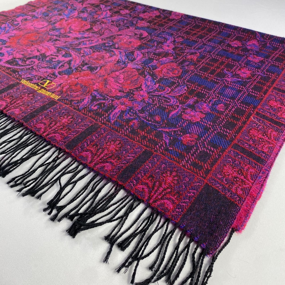 MPN: Does Not Apply Season: Fall, Spring, Summer, Winter Material: Cashmere, Wool Country of Origin: Japan Item Width: 31 inches Seller Notes: “This is used item, please don't expected it to be like "new" or in "pristine" condition, Thank You.” Accents: Crochet, Embroidered, Fringe, Fur Trim, Logo Garment Care: Dry Clean Only Brand: Valentino Handmade: No Materials sourced from: Japan Features: Multifunctional Theme: Art, Bohemian, Christmas, City, College, Countries, Festival, Flower, Geek, Gothic, Grunge, Hippie, Hipster, Holiday, London, Love, Motorcycle, Music, Punk, Retro, Rock, School, Ski, TV, USA, Designer Character Family: None Vintage: No Fabric Type: Tweed Type: Scarf Style: Square Scarf Personalize: No Department: Unisex Character: Hippie, Skater Girl, None Pattern: Floral Color: Multicolor Item Length: 42 inches
