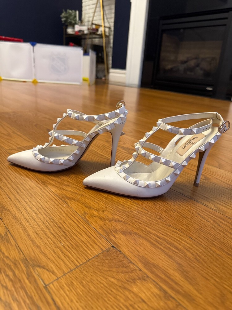 Upper Material: Leather Brand: Valentino Style: heals Department: Women US Shoe Size: 36.5 Color: Ivory Model: Valentino Rockstud Type: Heel