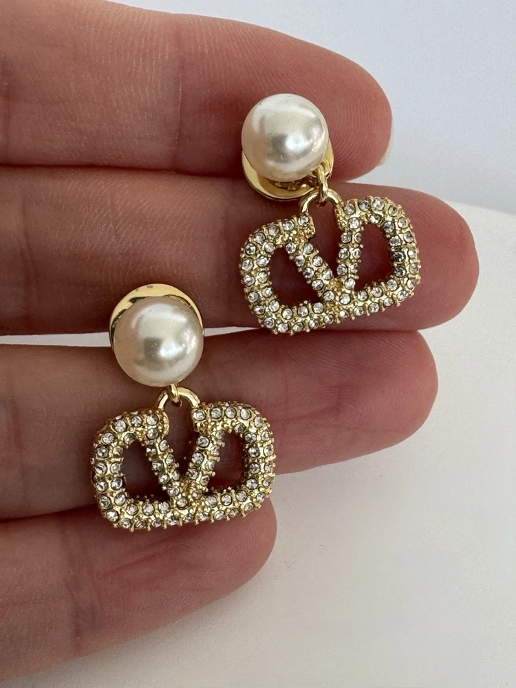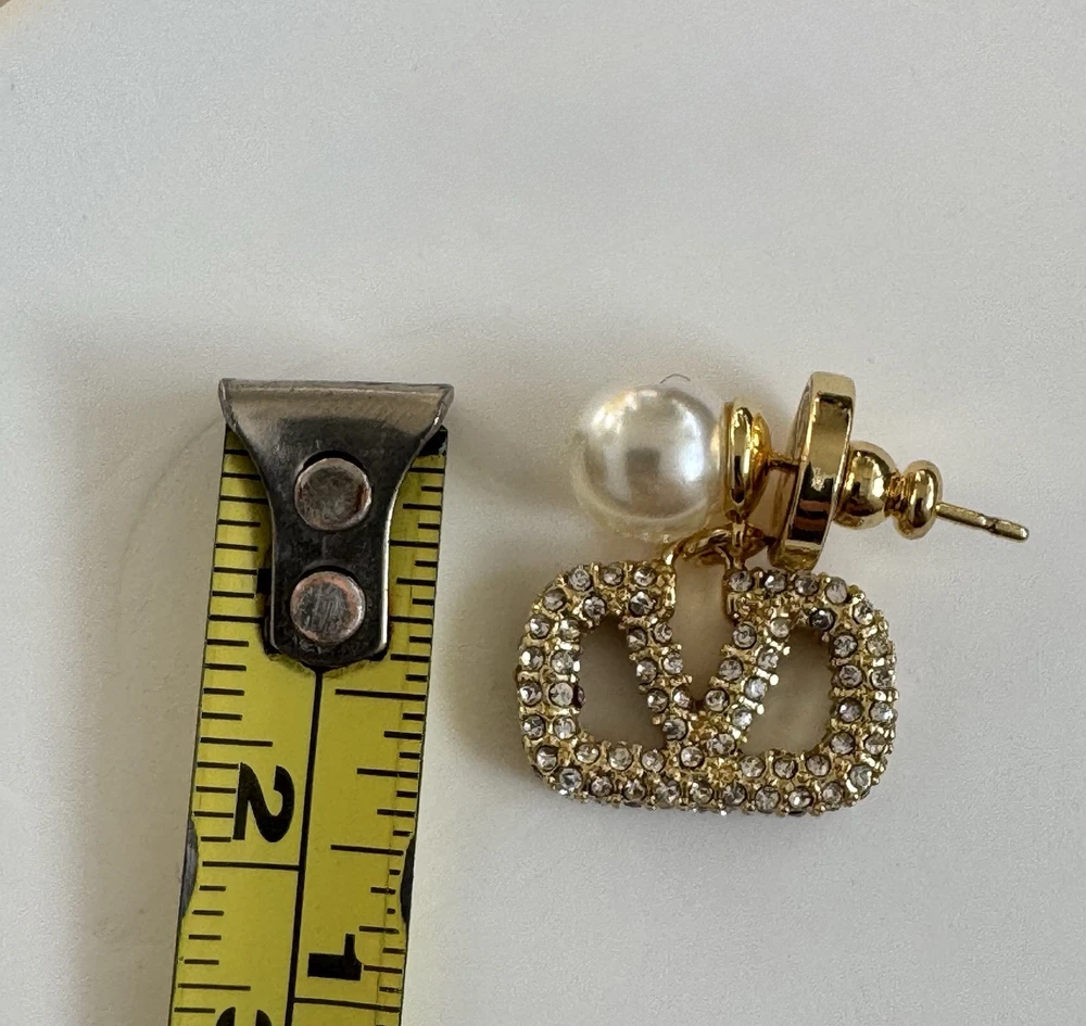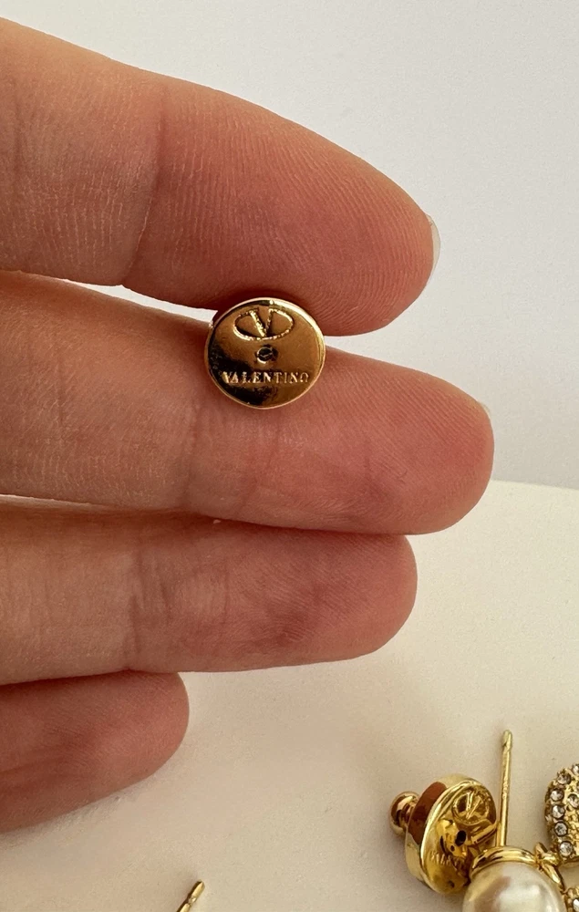 Valentino V logo earrings with crystals and resin pearls. Authentic. The earrings have been worn at 2 events, they are in very good condition. Very lightweight, for pierced ears, they will go with anything including bridal. Sold without the original packaging. From a smoke free and pet free home. Happy to combine postage 🤗