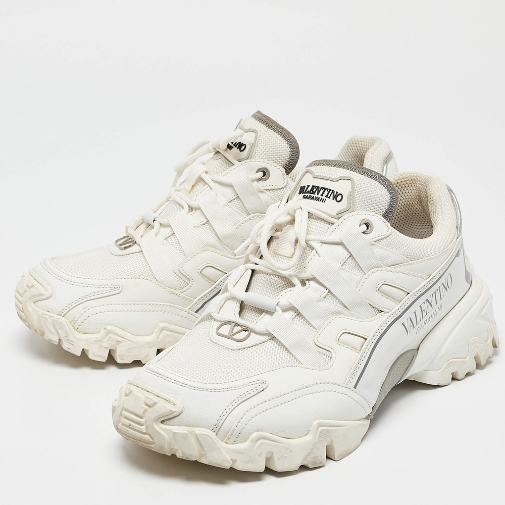Our eBay Store About Us Contact Us Add to Favorite Sellers Valentino White Leather and Mesh Climbers Lace Up Sneakers Size 40 Add a statement appeal to your outfit with these sneakers. Made from premium materials, they feature lace-up vamps and relaxing footbeds. The durable sole of this pair aims to provide you with everyday ease. Product Details Brand Valentino Color White Includes The Luxury Closet Packaging Outsole Length 30 cm Outsole Width 10 cm Size 40 Certified by The Luxury Closet This item has gone through a detailed authentication process overseen by our experts. We offer a lifetime guarantee of authenticity on all our items. How We Check The in-house team of experts at The Luxury Closet is highly trained to verify the authenticity and the condition of the luxury products. They ensure that only 100% authentic items are put on sale.The evaluation process is unique with its own mix of assessment criteria and differs according to the category. Each item is evaluated based on the following combination of hallmarks, hardware, stitching, symmetry, material, craftsmanship, stamping, codes, hologram stickers, and packaging. Our authenticators also check if the items have been modified or amended (e.g., aftermarket diamonds, replaced batteries, repaired bags, etc.) International Buyers Import duties, taxes and charges are not included in the item price. These charges are the buyers responsibility. Please check with your country’s customs office to determine what these additional cost will be prior to buying.