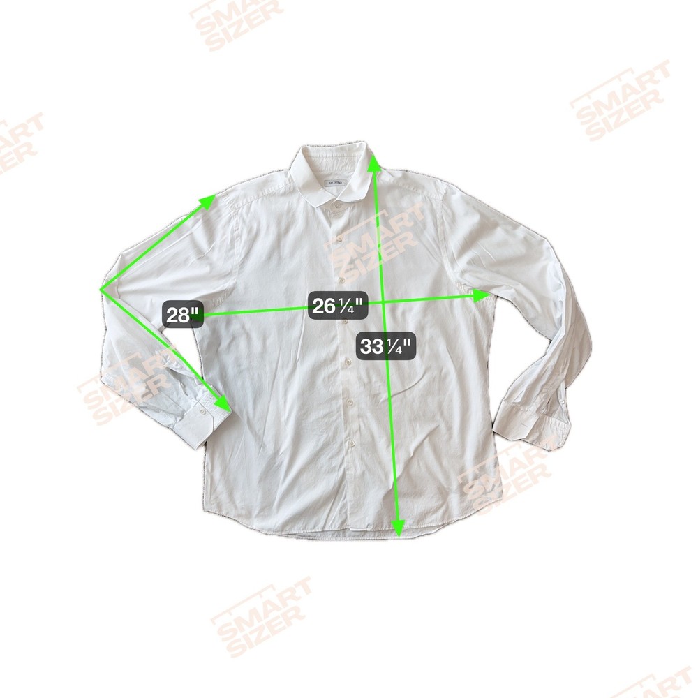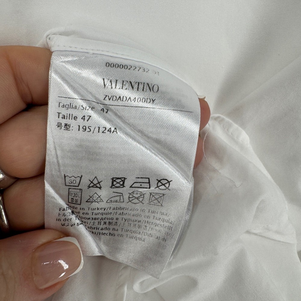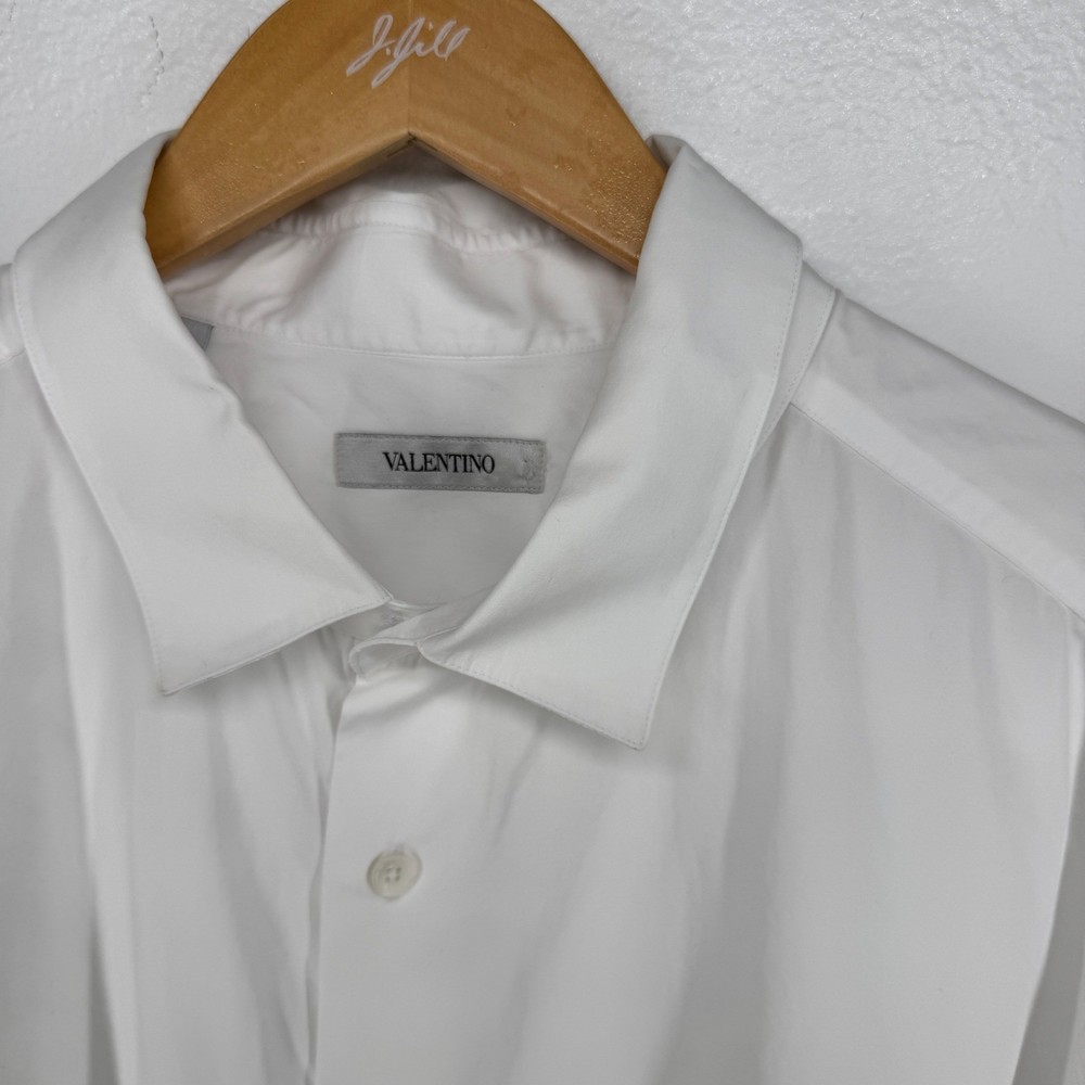 Valentino white long sleeve dress shirt. Classic collar and button front closure. Suitable for professional settings or formal events. Keywords: Valentino shirt, mens dress shirt, formal wear, business attire, classic, crisp, tailored, European size, Italian fashion, designer shirt, button down, workwear, evening wear Dimensions in photo 2. Thank you for your consideration. Please let me know if you have any questions.