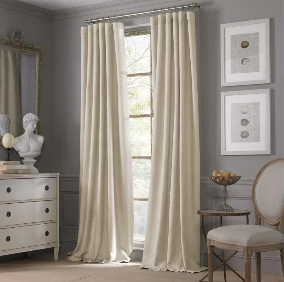 Item Length: 95 IN Style: Modern Country/Region of Manufacture: Turkey Curtain Heading: Rod Pocket UPC: 807000158737 Pattern: Solid Care Instructions: Dry Clean Only Room: Any Room Transparency: Room Darkening Features: Lined, Indoors, Interlined, Noise Reducing Item Weight: Heavy Item Width: 54 in Material: 52% Turkish Cotton, 48% Belgian Linen Mounting: Wall Mounted Department: Adults, Baby, Kids, Teens gtin13: 807000158737 Brand: Valeron Size: 54 W IN X95L IN Type: Panels Color: Beige