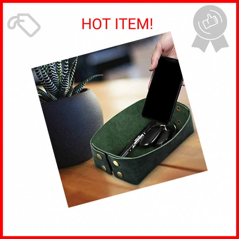 Valet Tray Desk Organizer Dresser or Nightstand Catch All Tray, Entryway EDC Dump Trays for Keys, Coins, Wallets, Crazy Horse Leather Tray, Green - [CATCH-ALL TRAY] Handcrafted from genuine leather, making for the best way to store all your daily carry in one handy place. - [ALL-PURPOSE TRAY] The perfect entryway table, or dresser organizer. Perfect for all of your daily accessories, Keys, watches, coins, wallets, jewelry, etc. Keep it by the front door to make your mornings run a little smoother. - [COLLAPSIBLE TRAY] A collapsible accouterment ideal for home or travel. Each leather storage tray has four snaps. Unsnapping the tray corners makes it lie flat and compact, making it an easy-to-carry item for travel. - [LEATHER VALET TRAY] Crafted out of leather, time and wear will only enhance its strength and appeal. Over time, it will develop a sheen from being handled, as opposed to other leather types, the quality of which can and will ultimately diminish. - [GIFT IDEAS] If you’re struggling to find gifts for him, this valet tray is here for you--it also functions as a men's nightstand organizer! This sturdy, dependable tray is one of the best gifts for women as well. - [DIMENSION] Snapped Form - 6.3 x 3.8 x 2 inches (LxWxH); Unsnapped Form - 10.2 x 8 inches (LxW). Payments We accept the following payment methods PayPal Support Our dedicated customer support team is here to assist you from 9AM to 5PM Monday through Friday, excluding public holidays. Should you reach out to us and not recieve an immediate response, it's likely due to a higher-than-usual volume of inquires. We want to reassure you that your concerns are important to us, and we're working dilligently to get back to you. Expect a response by the next business day at the latest. Your understanding and patience are greatly valued as we strive to provide you with the best support possible! Shipping All orders are processed within 5 business days. Shipping estimates may be shown on this listing by eBay, and these are often not an accurate reflection of our shipping times. If we are experiencing a high volume of orders, shipments may be delayed by a few days. Please allow additional days in transit for delivery. If there will be a significant delay in shipment of your order, we will contact you via message. Shipping rates & delivery estimates Shipping is often free, but if charges for your order apply they will be calculated and displayed at checkout.