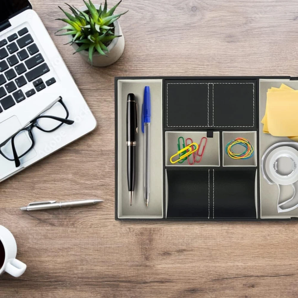Valet Tray Nightstand Organizer - Gifts for Young Men, Nightstand Organizer for Men, Black Valet Tray for Men, Leather Faux Leather and Suede Keep your space neat - This edc dump tray helps you keep your most-used items in one place. Place your , glasses, money, jewelry, and wallets in our space-saving faux leather and suede box. Classy storage space- Our edc tray's dark and sleek exterior looks suave on any bedside table, nightstand, or drawer. It's a modern and sophisticated catchall for your office or bedroom. Always in reach- Save time and energy as you prepare for the day. This x x inches caddy lets you store your daily necessities and essentials where you can easily see them. High end- The nightstand tray's interior is lined with grey suede. The bottom is felt-lined and strong against scratches. Every stitch is impeccably made against the black PU leather. A stylish and functional- This dresser top organizer won't ever fall out of style. It's a useful gift for all the men in your life. The tray comes in a presentable and ready-to-wrap packaging. Creating superior products- and customers for life!
