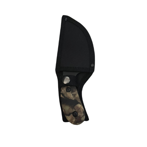 Get tactical with the Valor Claw Karambit Fixed Blade Knife, designed for control, durability, and impact. Featuring a black stainless steel hawkbill-style blade with a large finger ring for grip stability, and a camo G10-style handle for a rugged look. The knife includes a durable black nylon sheath with snap closure for easy carry and protection. Ideal for self-defense, tactical use, or collectors. Brand: Valor Overall Length: 7” Black Blade stainless steel length 4” Handle: Camo grip with rivet-fastened scales Includes: Black nylon sheath