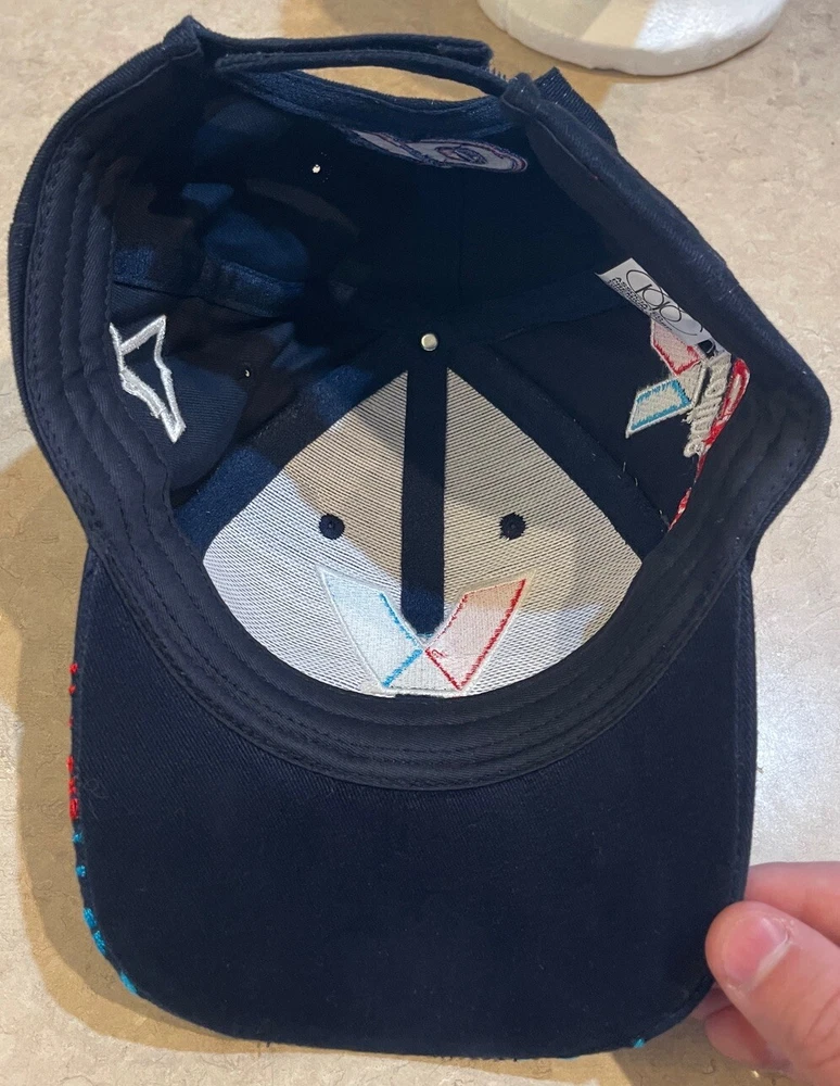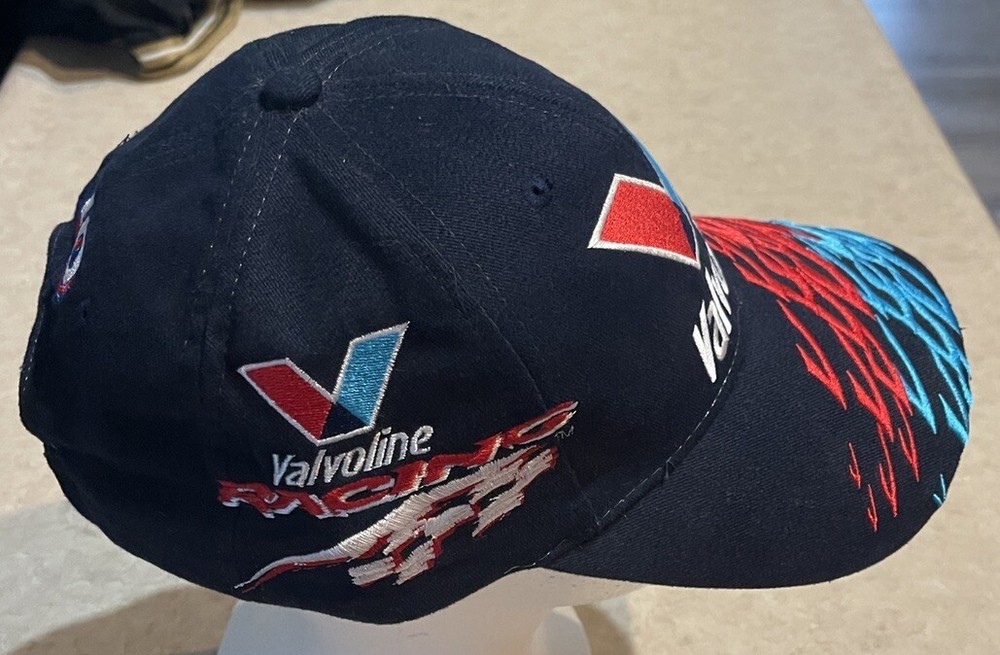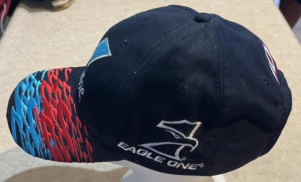 Show off your love for Mark Martin and Valvoline Racing with this officially licensed, NASCAR-sponsored #10 Eagle One hat. The colorful Y2K embroidered design is perfect for any auto racing fan. Made from high-quality materials, this one size fits all cap is suitable for men and features the iconic Valvoline Racing logo. Celebrate the Daytona 500 and add this collectible item to your fan apparel and souvenirs collection. Made in Hong Kong, this hat is a must-have for any NASCAR enthusiast. Get yours now and show your support for Mark Martin and Valvoline Racing! This hat is in good preowned condition, with little sign of wear. Please see ALL photos for a better idea on condition, and any details to the hat.