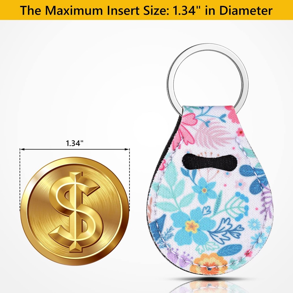 10 Pcs Coin Holder Keychain Keyring Universal AA Medallion Keychains for Women Material: Made of durable neoprene material, touching softly and comfortably, breathable, wear resistance and dirt resistance Size: 8.5 x 4.5cm/3 1/3" x 1 3/4" (LxW), Comfortable in a pocket or purse no scratch Universal: It can fit any sobriety medallion half dollar or challenge coin 1 5/16" or up to 34mm Ideal Gift: Perfect for a friend or a family member celebrating anniversary in recovery Package Include: 10 Pieces different color coin holder keychain, which can be easily hung on bags, wallets and keychains