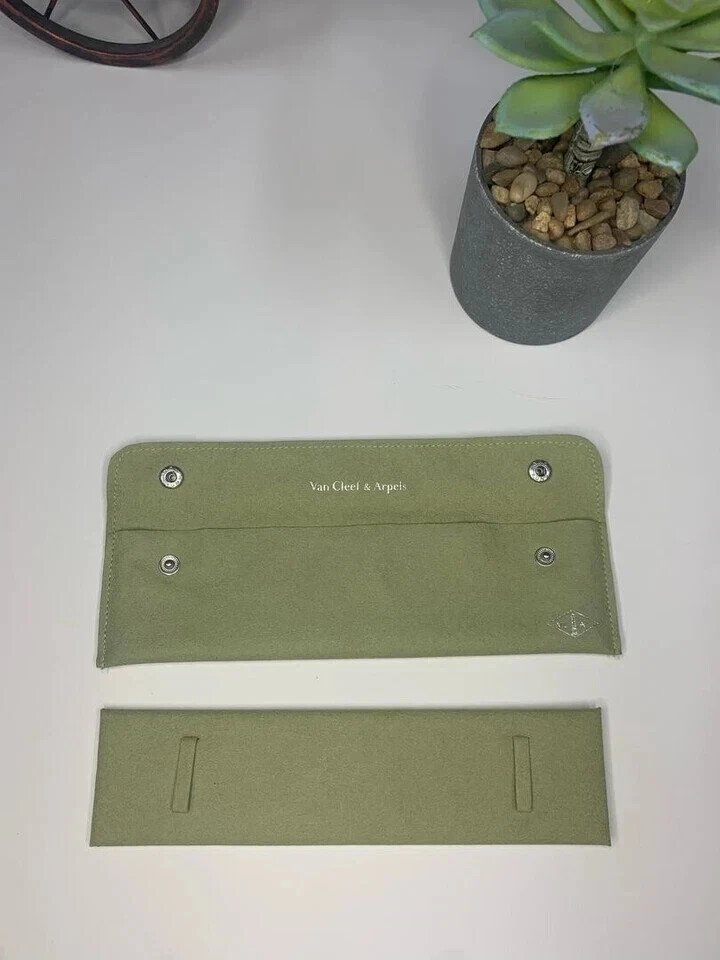 HomeVan Cleef & Arpels Green Suede Bracelet Case with Pouch VCA Full Set
