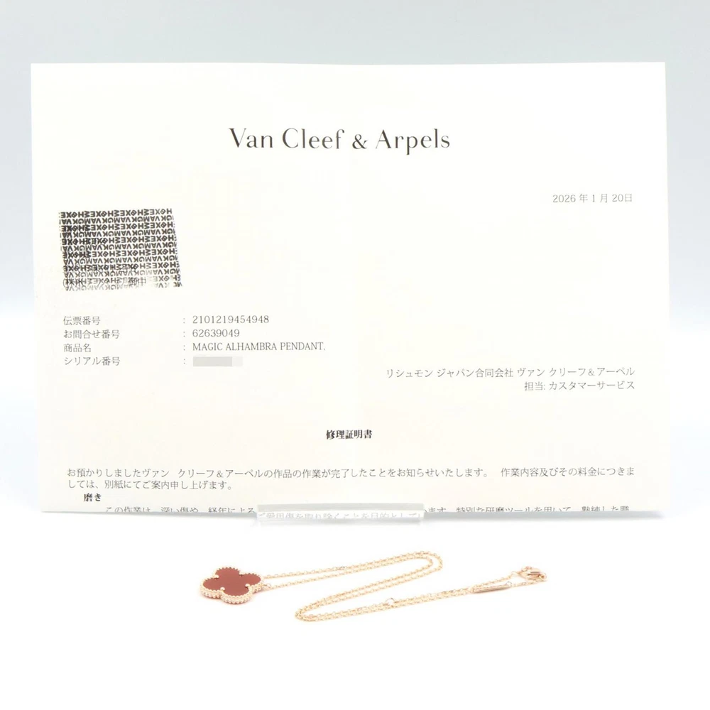 Van Cleef & Arpels Magic Alhambra Necklace 18KPG Rose Gold Carnelian Used women Description / Specification Brand Name VAN CLEEF & ARPELS Item Name Van Cleef & Arpels Magic Alhambra Necklace 18KPG Rose Gold Carnelian Used women Color Gold‐ish colors × Red‐ish colors Material K18PG(Rose Gold) × Carnelian Metal Purity K18PG(Rose Gold) × Carnelian Size Neck rotation:37.5/42cm(14.8") Motif W:20mm x H:20mm(0.8" x 0.8") Weight 6.6g Accessories Repair certificate Accessories not stated are not included. (If there is no mention of a box or dust bag, they are not included either.) Instore Code 2101219454948 Up Date 2026/01/29 Condition Pre-owned used Necklace by VAN CLEEF & ARPELS in good condition . Outside Condition There is some usability, scratches, rubbing, and stain. Inside Condition There is some usability, scratches, rubbing, and stain. Remarks There are some signs of wear. *This product has been polished, but there may be small scratches that cannot be removed. Thank you for your understanding. The individual manufacturing number (serial number) is not printed to protect personal information. However, it is engraved. Please take a look at the descriptions and the pictures above to check the condition of the item before the purchase. Rank Pristine New, Not used. Excellent Excellent, Allmost as good as new. Very Good A slightly used. Good There are a few scratches, stains and looks a little used. Fair + There are some noticeable scratches and stains. Looks used. Fair There are some noticeable scratches and stains. Looks obviously used. Poor + There are many scratches and stains. Looks very used. Poor Looks very used, but still usable. About Authenticity We have a large selection of luxury brand products We guarantee that all of the items we list and sell are authentic. Feel free to contact us if you have any inquiries or concerns. We are approved seller from Tokyo Metropolitan Police License No : 301061906960(Used Item Seller ) In addition, We also are a member of the Association Against Counterfeit Product Distribution (AACD), and we promise to have no bogus under any circumstances. Please read before order Shipment cannot be marked as a 'gift' or with altered price due to the custom declaration laws. Import duties, taxes, or other additional fees will be charged by your local customs. We are not responsible for any customs and taxes applied to your order. All fees imposed during or after shipping are the responsibilities of the customer (tariffs, taxes, etc.). Please inquire the details of import duties or taxes at the customs office in your country directly before making an order. Payment & Shipping Payment We only accept payments via Managed Payments. Shipping All items will be shipped from Japan. We can only make shipment to the registered address with your ebay account. All orders are processed within 3-5 business days. Orders are not shipped on weekends or holidays. 1.Shipments will be made by DHL. 2.For orders which are not able to be shipped by DHL, they will be shipped by Fedex or UPS. 3.Orders for China will be shipped via EMS of the Japan Post. 4.We currently suspend shipping services to APO/FPO, Brazil, Chile, Indonesia, Mexico, Peru, Philippines, Russian Federation, and Ukraine. Delivery time 1.Delivery usually takes approximately 3-10 business days 2. Shipments might be delayed due to the following reasons: a)Bad weathers b)Public holidays c)Delay at the customs office Returns/Cancellation Policies As we selling our items on other websites and in our retail stores in Japan at the same time, if the item was sold out before your purchase, your order will be cancelled with a full refund Customers are allowed to return the item within 30 days from the delivery or pick up date for a full refund. Items without the security tag are not allowed to be returned. All fees imposed during the return shipping are the responsibilities of the customer Please contact us before starting a return Please provide us the tracking number once return shipment is made. If the mistake caused by human error is occer, please forgive me for cancelling by us. See more Policies & Description