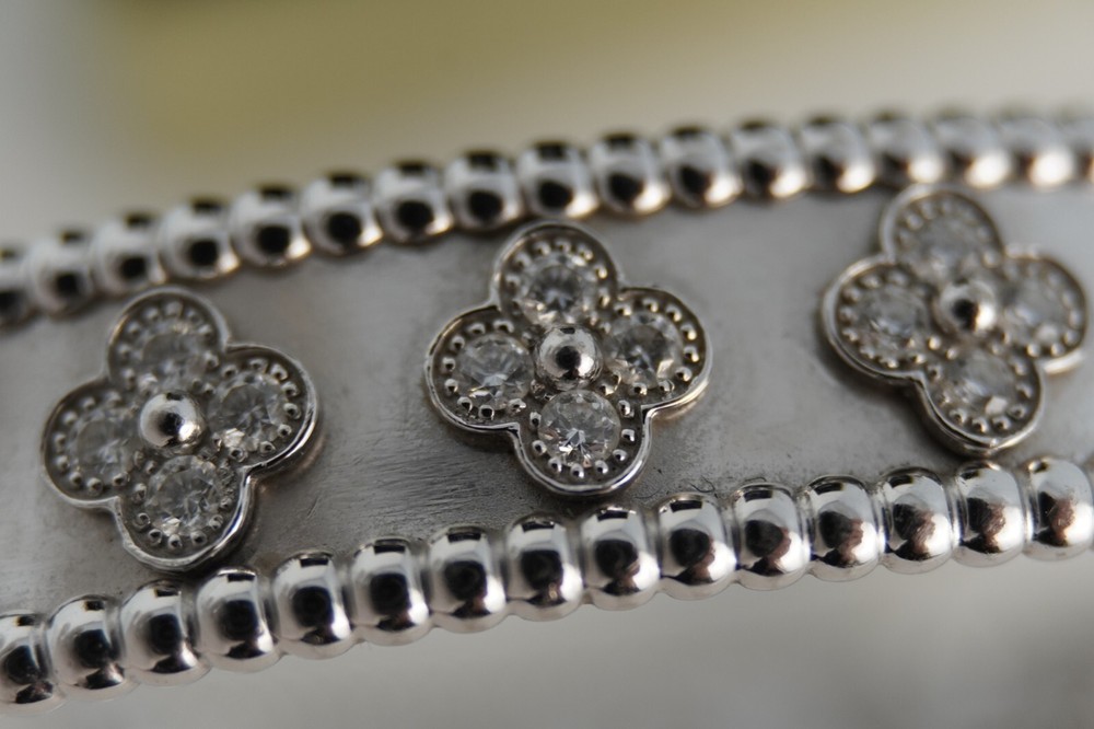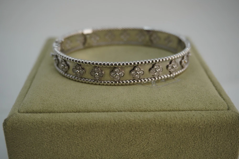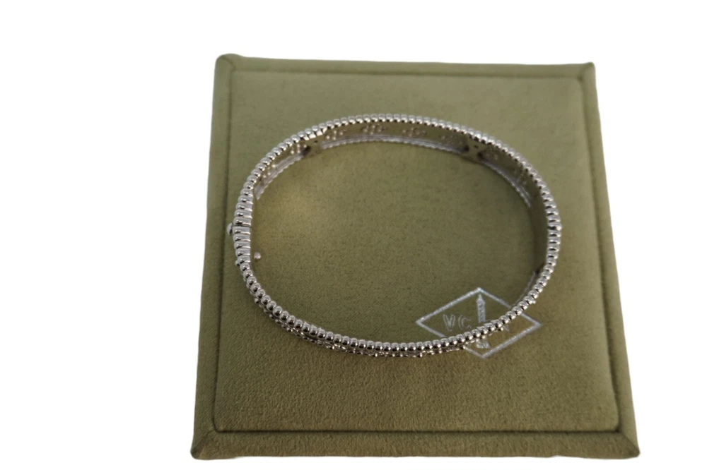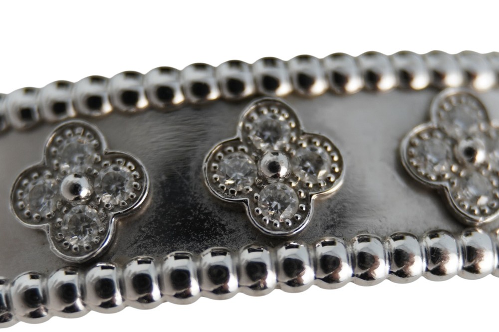 Discover the timeless elegance of the Van Cleef & Arpels Vintage Alhambra Bracelet in 18K White Gold with Diamonds. Featuring the iconic Alhambra four-leaf clover motifs, each adorned with sparkling pavé diamonds, this exquisite bracelet showcases Van Cleef’s signature craftsmanship and timeless design. A true statement of luxury, perfect for any fine jewelry collection.