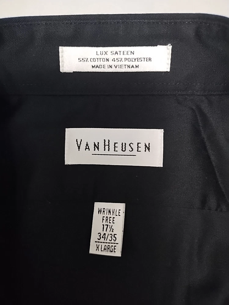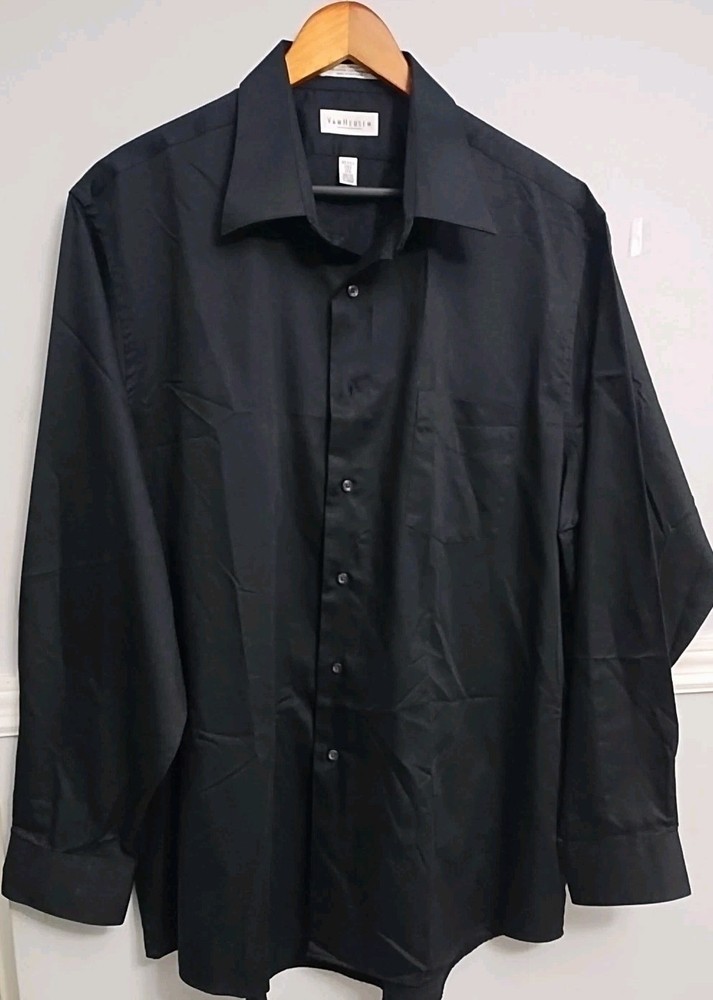 VAN HEUSEN Wrinkle free Men's black Size XL 17 1/2 - 43/35 Lux sateen 55% cotton, 45% polyester In excellent condition Please see photos for measurements and more details Any questions please let me know. B#10