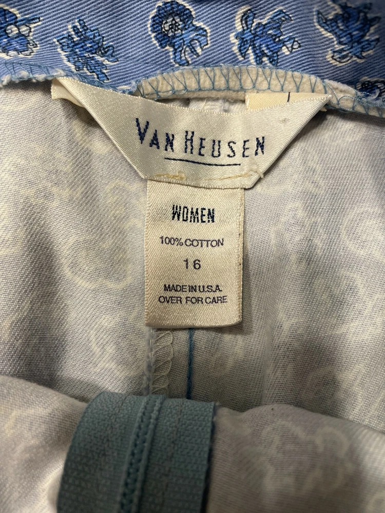 Season: Summer Size: 16 Handmade: No Skirt Length: Short Fabric Type: Denim Garment Care: Machine Washable Pattern: Floral Vintage: No Theme: Flower Style: Casual Closure: Zip Fit: Regular Size Type: Plus Performance/Activity: Walking Brand: Van Heusen Material: 100% Cotton Occasion: Activewear, Casual Seller Notes: “Pre-owned with minimal signs of wear” Rise: Mid Front Type: Flat Front Department: Women Type: Skort Color: Blue