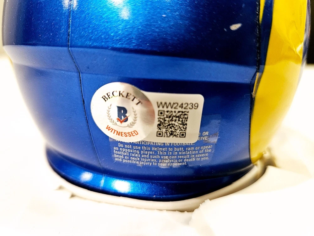 Van Jefferson Los Angeles Rams. Autographed Mini Helmet. Beckett Certification. Note All Items Have A Certification Sticker On Them. These Certification Stickers Will Be From Beckett, JSA, PSA , RSA or OKAUTHENTICS. Some Items Will Come With Matching COA, While Others May Not. Please Refer To Images Taken To See If Item Comes With Matching COA $5 USPS Shipping Combined shipping on all items won within 3 days. Each additional jersey won will only be $3 extra shipping