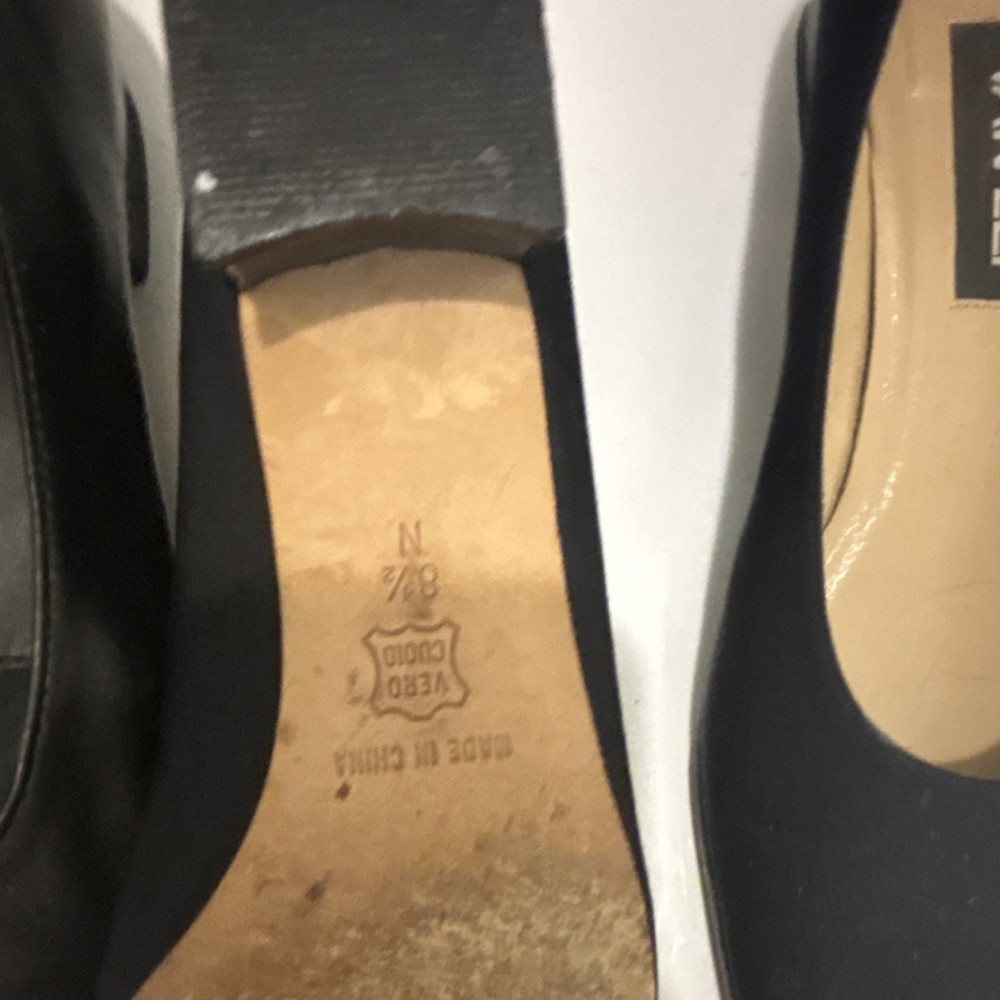 The Vaneli Black Leather Square Toe Cap Toe Slip On Flats in women's size 8.5N are stylish and versatile shoes perfect for casual occasions during the fall and spring seasons. These flats feature a solid black color with a unique square toe cap accent, adding a touch of elegance to the classic slip-on design. Made with high-quality leather, these flats offer both comfort and durability, making them a great addition to any woman's wardrobe. ( the listing is for both pair of VanEli shoes)