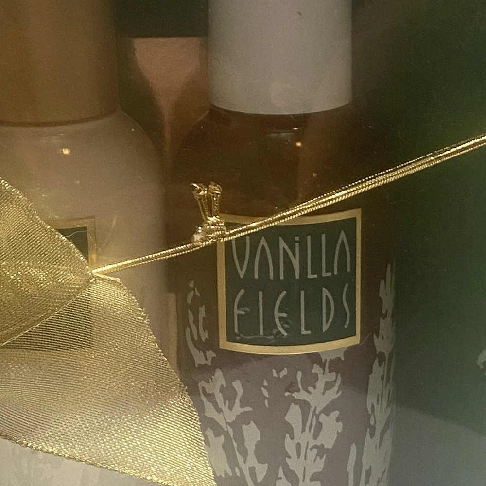 Vanilla Fields By COTY VTG lotion And Shower Gel 6oz Wood Crate Gift Set. For decor or prop only. Product is vintage and not for personal use. Sold AS IS. Sealed package, gift set.