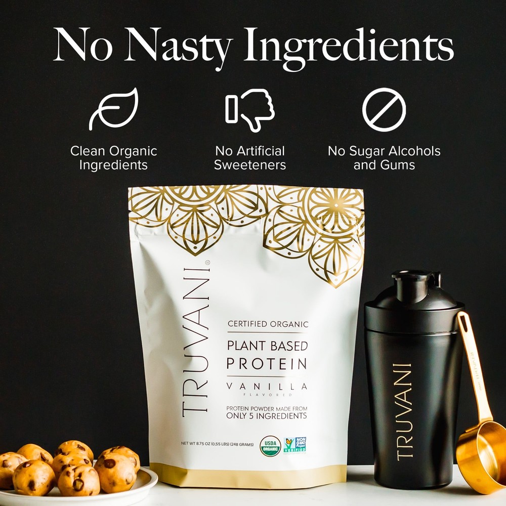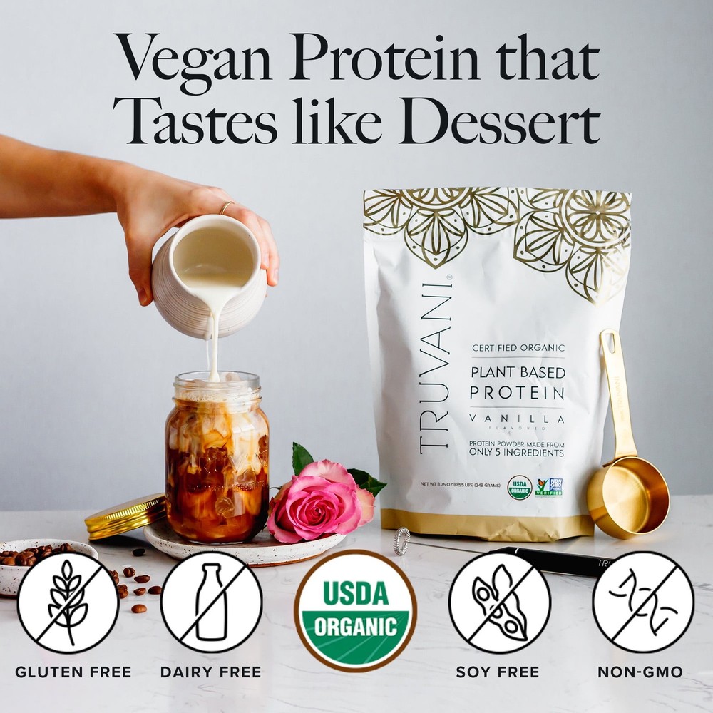 USDA organic. No stevia. We use as few ingredients as necessary from the best sources possible. And nothing more. Protein Powder, Plant Based, Vanilla Flavored USDA Organic, Certified Vegan, NON-GMO Verified, Gluten Free Certified, Dairy Free, Soy Free Only certified organic ingredients. Easy way to get enough protein Not chalky or grainy like other protein powders. Tastes like a dessert. Delicious Vegan Protein Shake: Add a scoop to your morning smoothie or post-workout shake for a delicious protein boost; Our plant protein powder provides a rich flavor without a chalky or grainy texture Supports Muscle Recovery : Our dairy free protein provides your muscles with protein, allowing you to build & maintain healthy, lean muscles; Satisfy your sweet tooth while boosting protein intake & supporting muscle maintenance