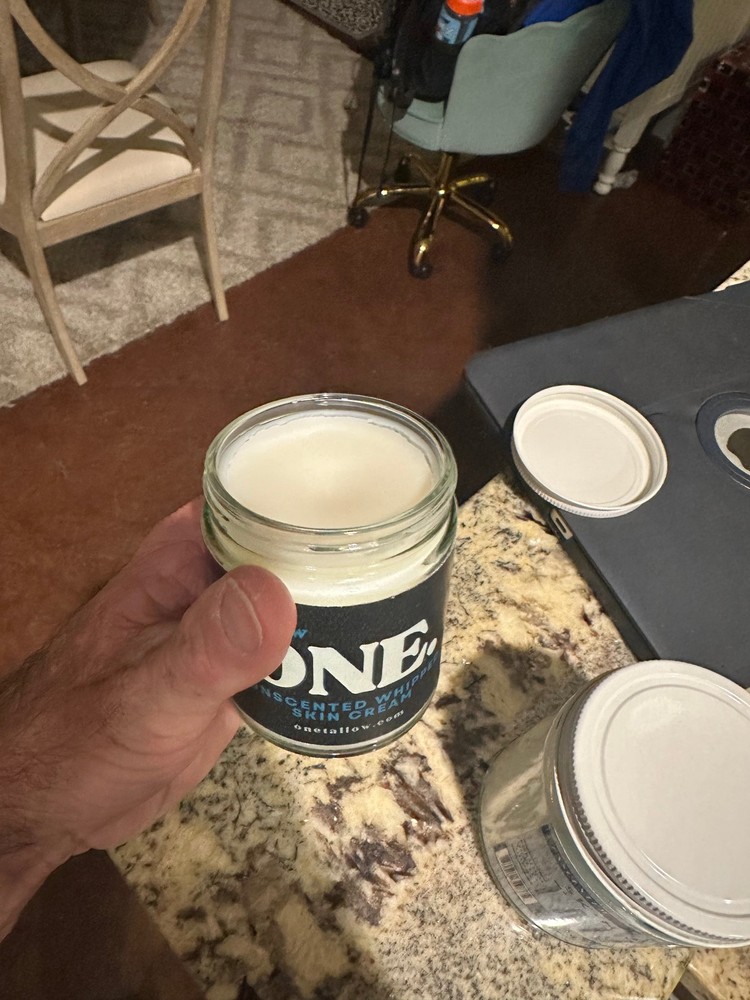 Our Whipped Tallow Cream deeply moisturizes, soothes irritation, and promotes healthy skin for the whole family. It is Perfect for sensitive skin, dry patches, diaper rash, sunburn, hair treatment, and more. We take our Grass Fed Beef Tallow and whip air into it, creating a soft, fluffy Tallow Cream that feels great on your skin. It is made from natural ingredients and preservative-free. It can be used on both the face and body to heal and prevent dryness, as well as other skin conditions. Our Organic Tallow Cream is packed with vitamins A, D, E, and K. It can also fight free radical damage that contributes to the formation of fine lines and wrinkles. In addition, Hydrating Tallow Cream helps to maintain youthful, healthier-looking skin. HANDMADE ALL SKIN TYPES: You can experience the nourishing power of Handmade Tallow Cream. It is crafted to deeply moisturize and soothe dry, irritated skin. It hydrates, restores, and protects, leaving skin soft and healthy. SOOTHING BENEFITS: Experience the soothing benefits of Sensitive Skin Tallow Cream. It is specially formulated to hydrate and protect delicate skin. It is ideal for sunburn, rashes, and irritation. It deeply nourishes with vitamins and essential fatty acids, helping to restore softness and balance. NATURAL HYDRATION: It is made from nutrient-rich, preservative-free, grass-fed beef tallow. This Anti-Aging Tallow Cream deeply nourishes skin, reduces fine lines, and supports a youthful glow. It is ideal for dry, sensitive skin seeking natural hydration and long-lasting softness. ECO-FRIENDLY AND MOISTURIZING: This Deep Moisturizing Tallow Cream is safe for use on the face, body, and hair. It hydrates deeply, restores the skin's natural barrier, and adds shine to hair. This cream delivers intense moisture and lasting softness. CUSTOMER SATISFACTION: We value every customer response and offer friendly customer service. We are willing to help you in every possible way. We sincerely hope you could enjoy the purchase and enjoy your life carry with our Grass-Fed Tallow Cream. WHY DO WE LOVE WHAT WE DO? We love to develop and sell products that make people feel happy and make their lives complete and easy! SPECIFICATIONS: 8 oz size in glass jar Light vanilla fragrance Softness and Balance Eco-friendly packaging All-Natural Tallow Moisturizer Grass-Fed Beef Tallow, Vanilla Extract, Vitamins A, D, E, and K