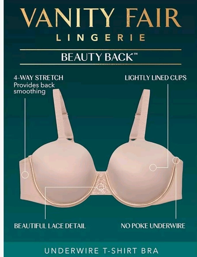 Vanity Fair Full Figure Beauty Back 4 way stretch fabric for a smooth back. Style 76380 size 42d new with tag