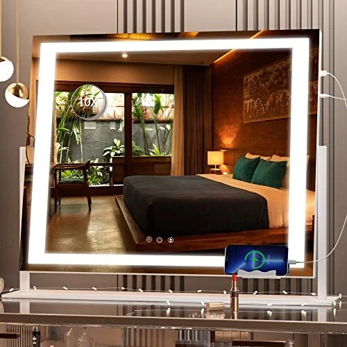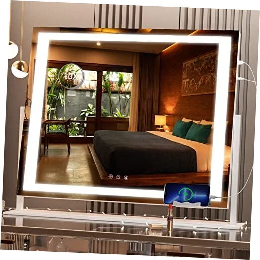 Return Policy Fast Delivery Trusted seller Vanity Mirror with Lights, 24.2" x 19.7" LED Makeup Mirror, Light up Mirror with 10X Magnification and USB, Phone Holder, Smart Touch 3 Colors Dimmable, 360° Rotation (Right Angle White) Product Description ?【HD Reflection & 10X Magnification】 makeup mirror is made of high-definition quality glass, which can perfectly reflect your overall makeup. It comes with a 10X magnifying glass that you can attach to the illuminated mirror for detailed makeup on your face. ?【USB Charging Port & Phone Holder】The right side of the vanity mirror is equipped with USB charging ports, which can charge your smartphone or other USB devices, giving you a different and convenient experience. The mirror comes with a detachable phone holder, which is convenient for you to watch videos on your phone while you are putting on makeup. ?【180 Encrypted Lamp Beads】Most of the makeup mirrors with light strips on the market only have 120 lamp beads, which makes consumers feel that the lighting is not enough. And we improved that! We have a full 180 lamp beads per meter of light strips, which greatly improves the brightness of the vanity mirror. ?【Desktop & Wall Mounting】The illuminated makeup mirror is held in place by a removable base, making it easy to install on any desktop. And it has two hanging holes in the back panel for mounting on the wall. ?【Professional Lighting & Eye Protection Light Strips】Select your favorite lighting with the touch button, three color temperature options from warm white (3000K), natural white (4500K) to cool white (6000K), and also supports 20% - 100% brightness adjustment ; make-up mirrors use eye-protecting LED light bar that last for more than 50,000 hours, simulating lighting in various occasions to meet personal makeup needs. ?【Perfect Size & Professional Mirror】Vanity mirror large size: 24.2"L x 19.7"H x 5"W, providing you with the perfect viewing angle; the mirror frame is made of sturdy aluminum alloy material, The mirror surface is made of explosion-proof copper-free silver-plated glass, which can keep the bonding state even if the glass is broken without causing damage. ?【Pre-installed Screws】Warm tip: In order to prevent the loss of screws, we no longer pack extra screws, but pre-installed the screws of the vanity mirror at the connecting rod of the mirror and the base. You just need to remove the screws and you can install it. Shipping Returns Payment Shipping Shipping is FREE to all addresses other than APO/PO boxes in the lower 48 states. All our stock ships from US-based warehouses. Shipped via USPS or UPS (depending on location and package weight) Unless stated otherwise, all orders will ship within 24-72 hours of your payment being processed. Check our feedback to see the great reviews of FAST shipping we offer. Returns Seller does not accept returns Payment We currently accept payment via eBay managed payments only. Once payment is cleared, we will dispatch your shipment within 1-3 business days. Please refer to the "Shipping" tab for more information regarding shipping speed to your destination.
