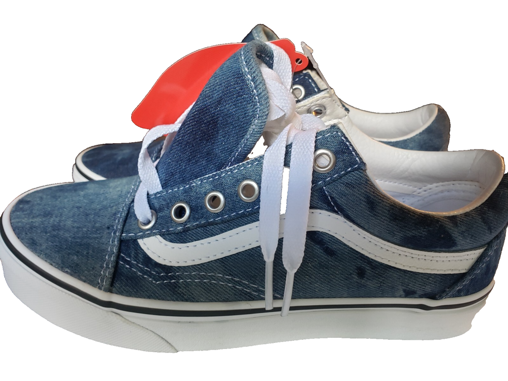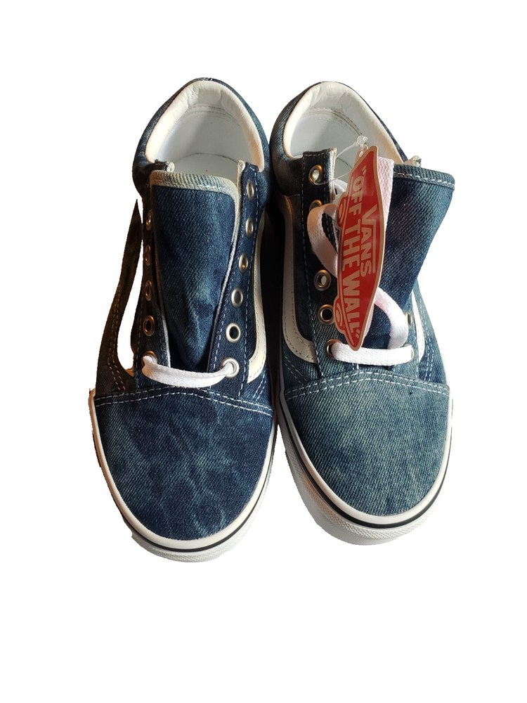 The product is a rare pair of Vans shoes in blue denim color, featuring the Vans Authentic style. These popular sneakers are designed for unisex adults in a US shoe women's size 7, making them a versatile and comfortable choice for everyday wear. The Vans brand is known for its quality and unique style, making these shoes a popular choice for those looking for a classic and on-trend footwear option. BRAND NEW with tags!!!