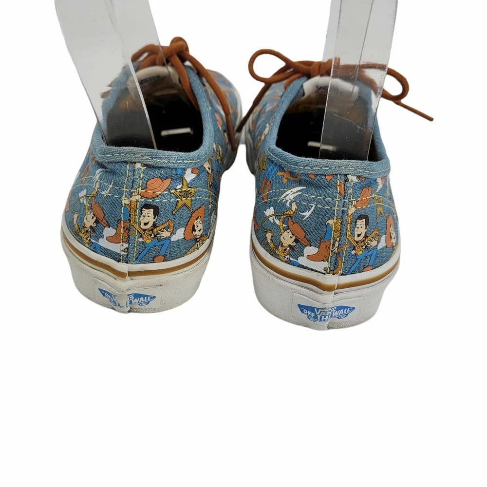 721278 rare Vans Disney Pixar Toy Story Sheriff Woody low top lace up skater fashion sneaker with brown rope laces. Gently pre loved no noted flaws Size Womens 6.5 Mens 5 Seller on multiple platforms and next day shipper. Bundle and save. 721278 Streetwear Skater Toy Story Woody